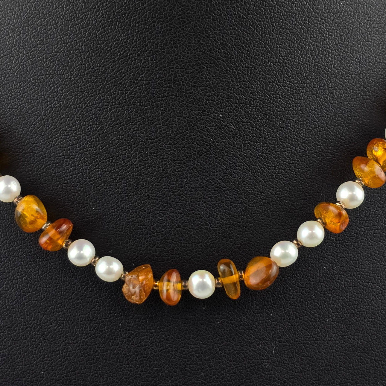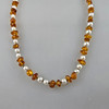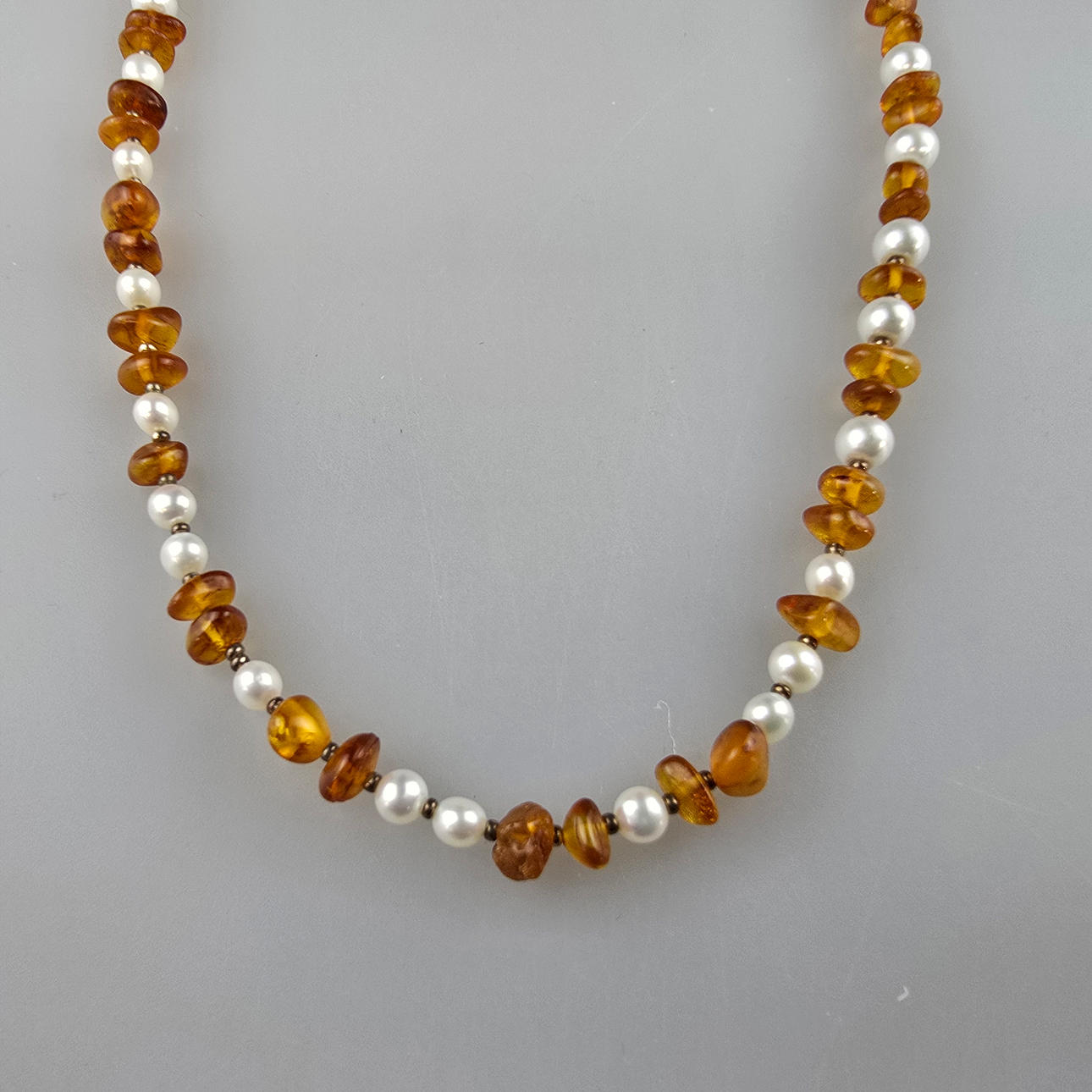 Vintage necklace - necklace with natural amber elements and decorative pearls, spring ring clasp, L.ca. 45.5 cm, weight approx. 13.8g.