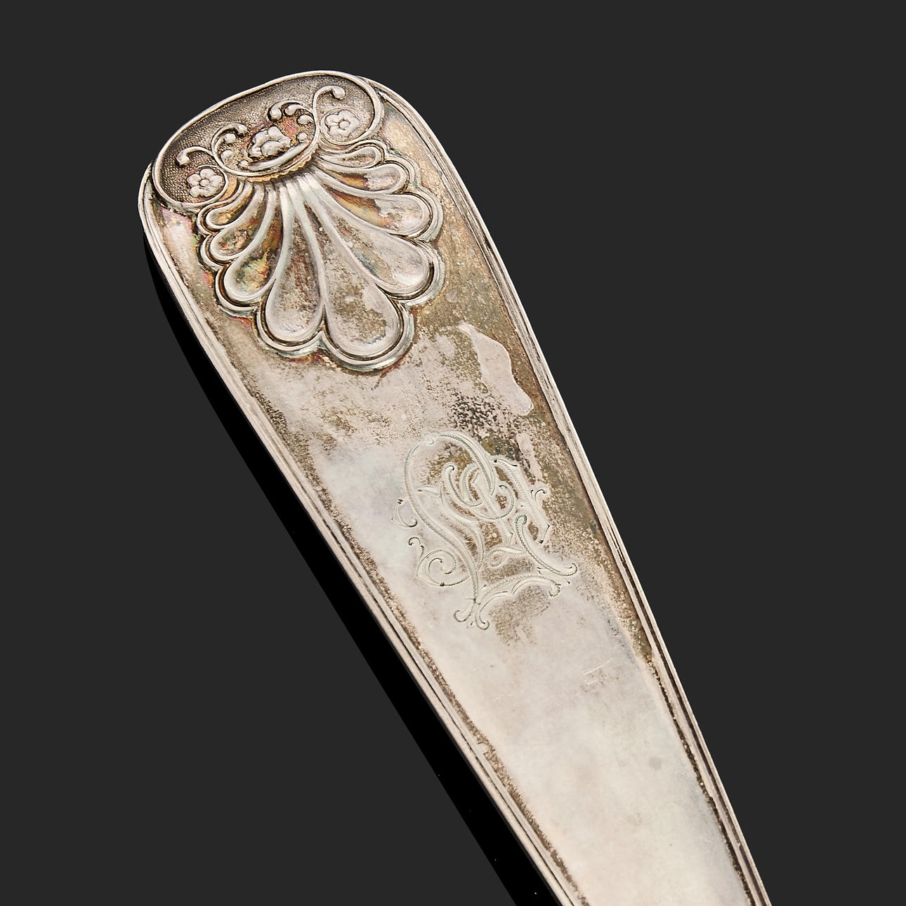 Normal wear and tear. Monogram engraving.