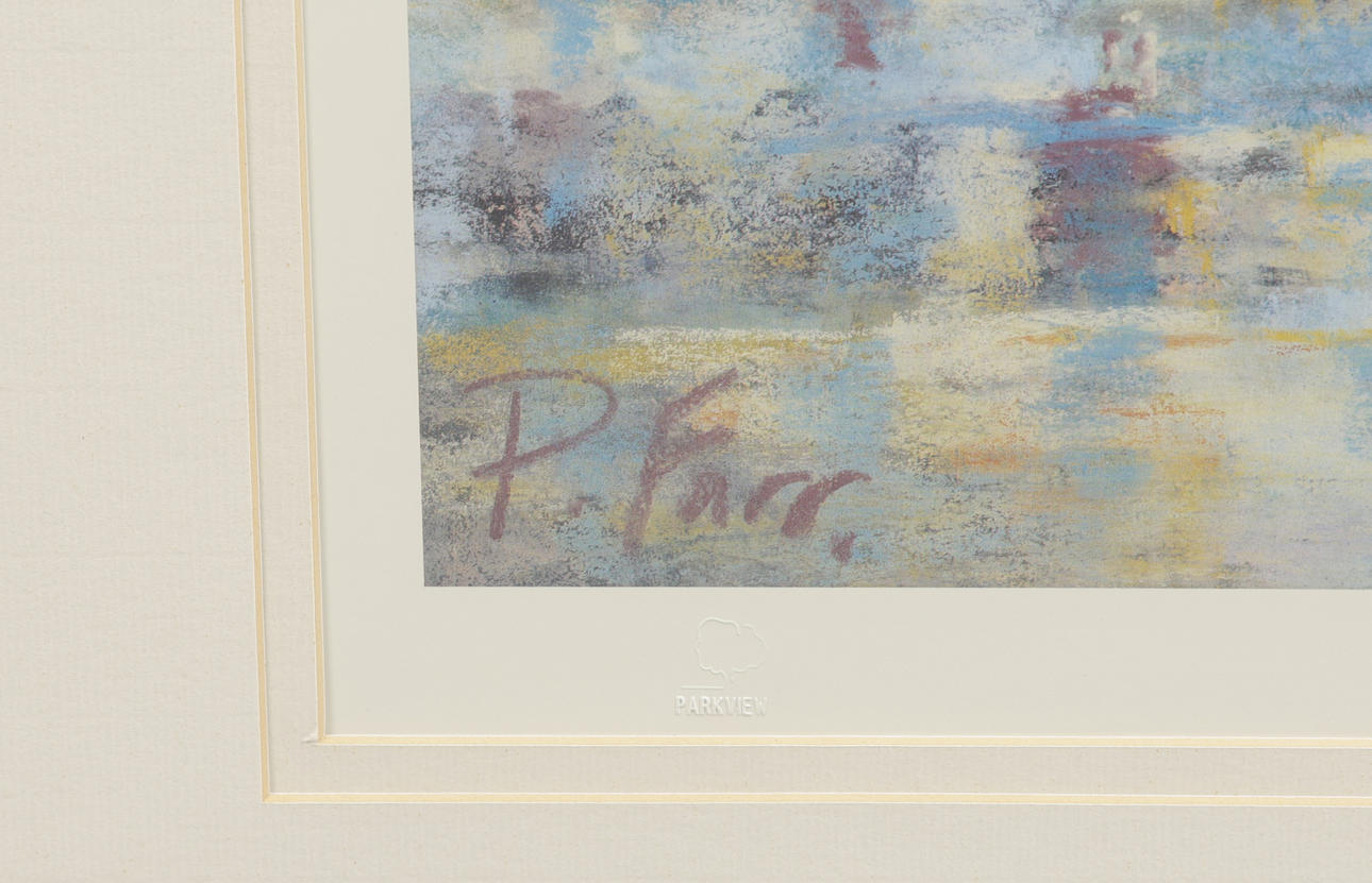The framed and glazed limited edition print depicting a mother walking her children to the water, signed and numbered 100/350 bottom-right, frame measures 78cm x 63.5cm.