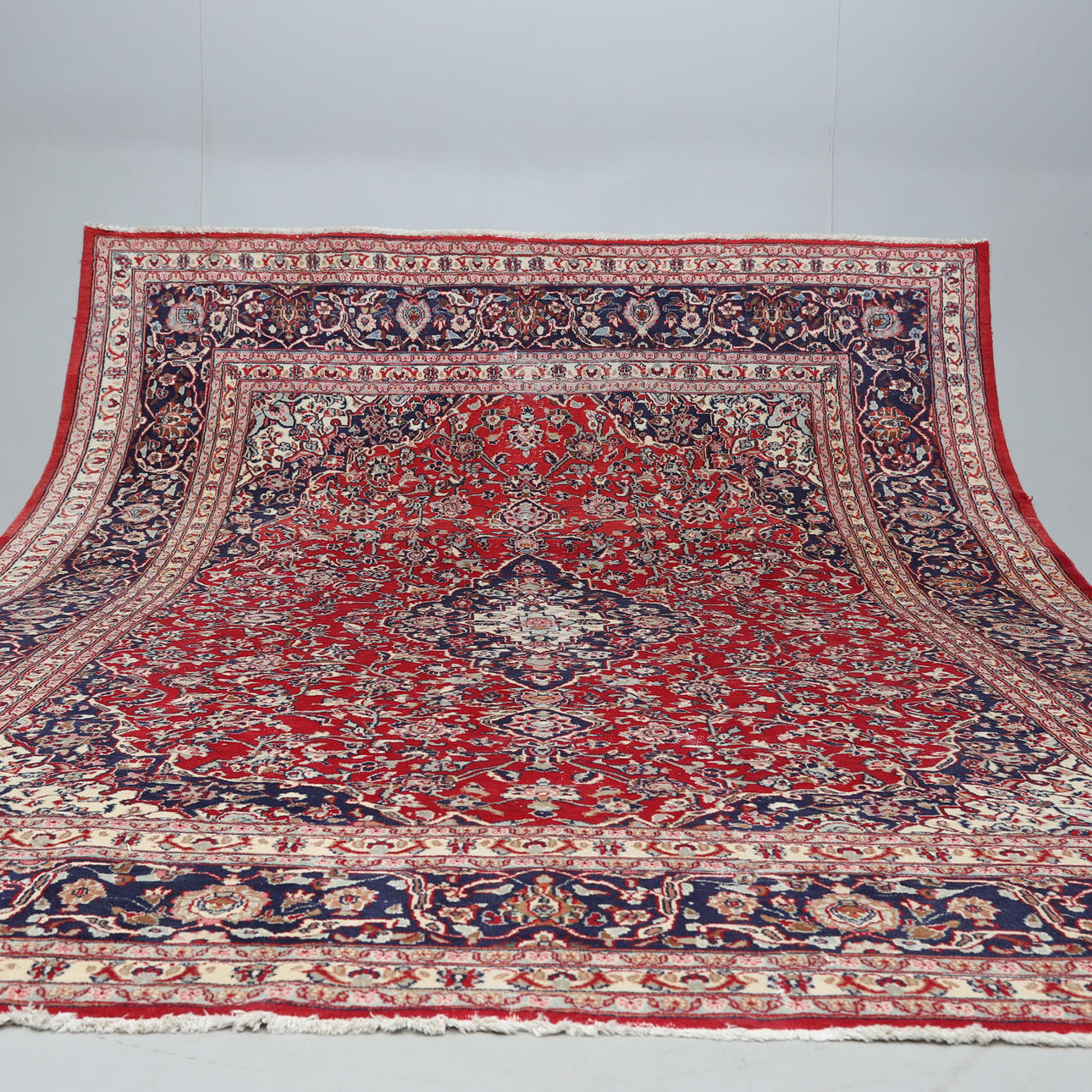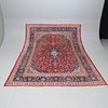 Patterned carpet with red base color.