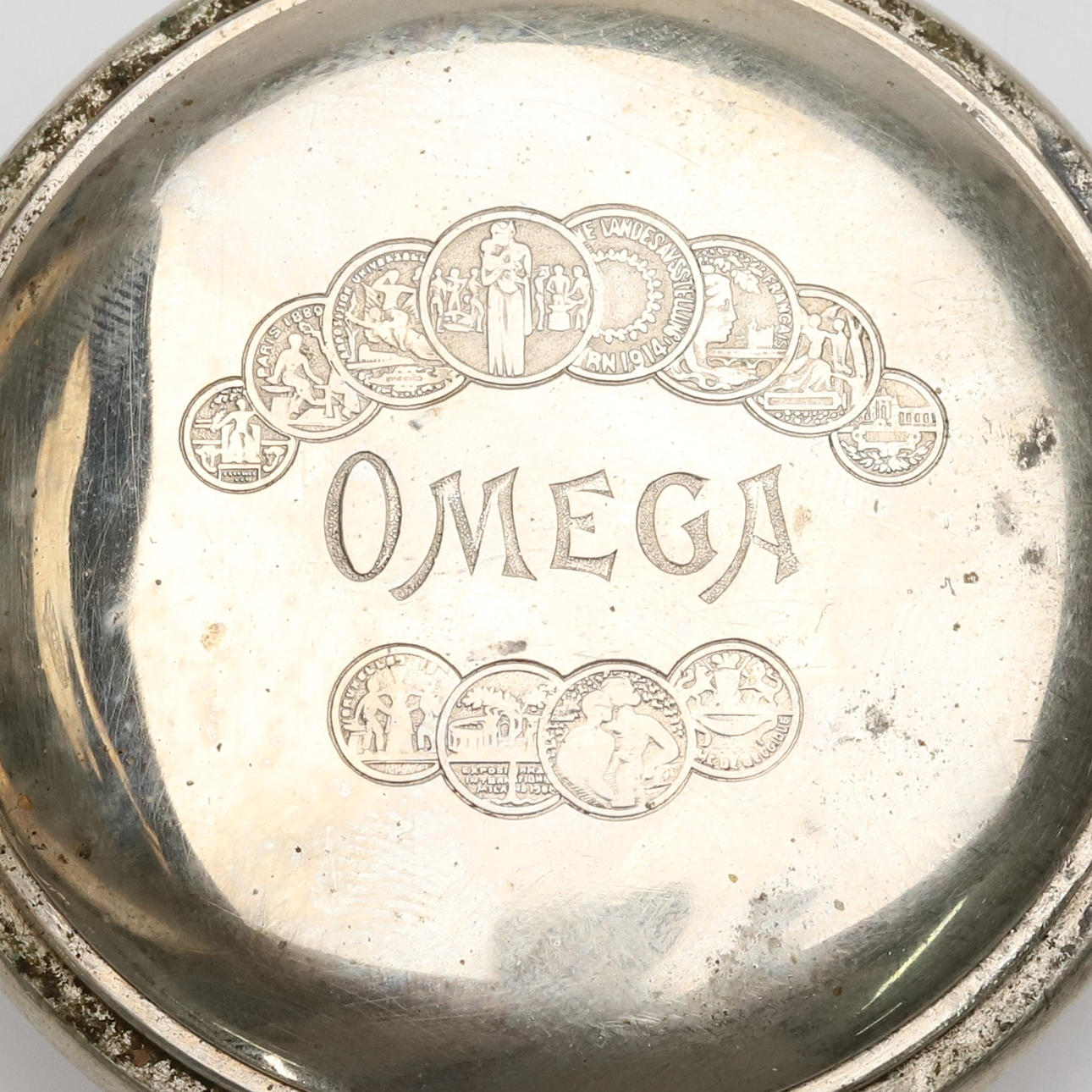 Pocket watch Omega, silver with case, diameter approx. 54 mm.