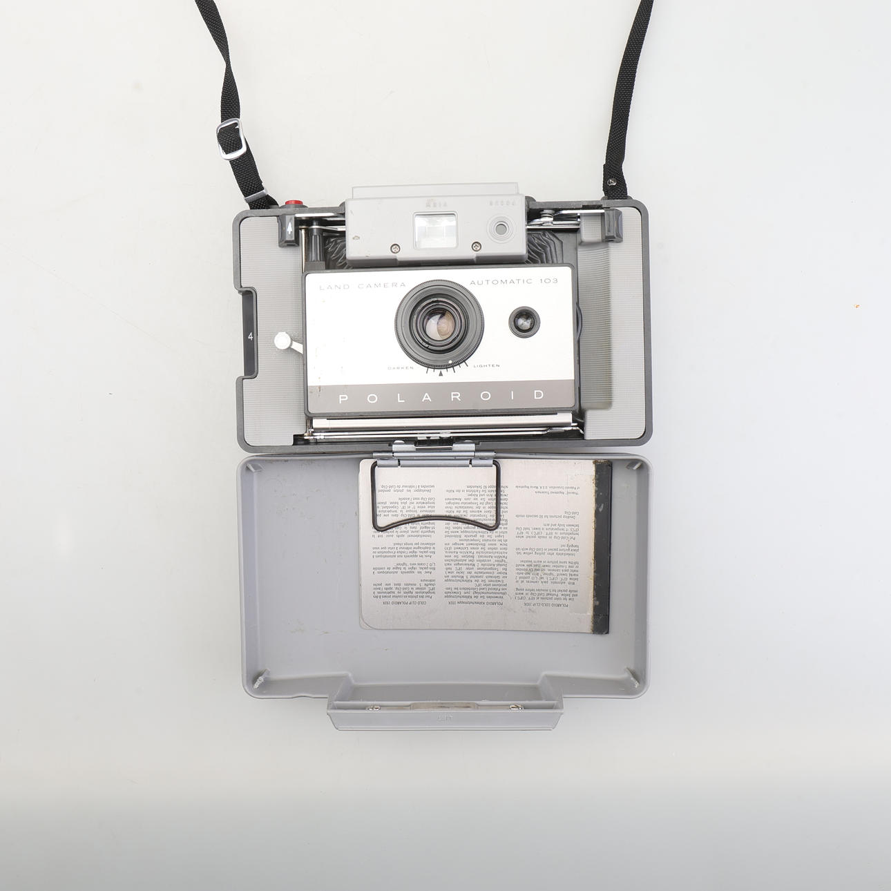 Original case, flash, viewfinder and manuals. Bag dimensions approx. 21x35x5 cm.