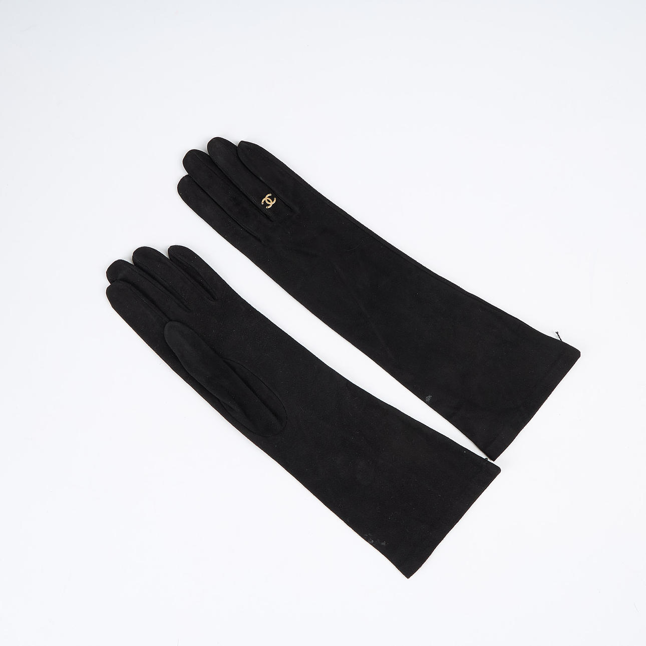 4786703. CHANEL, gloves, black suede, CC logo.