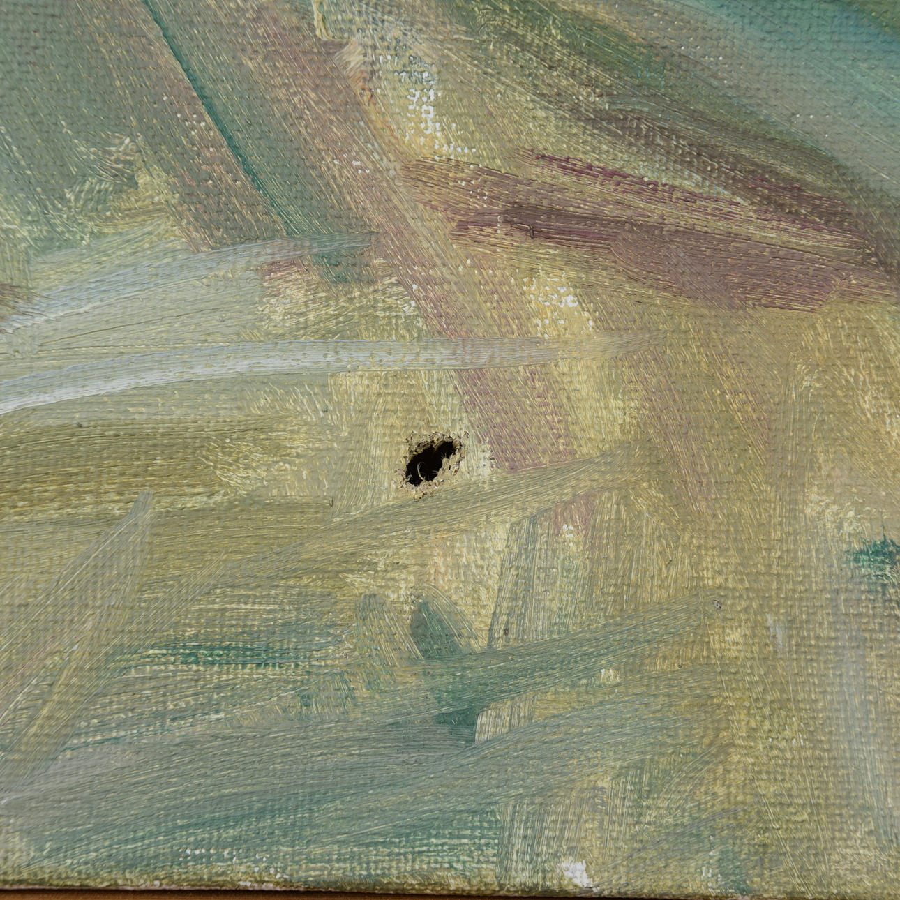 A hole on the canvas.