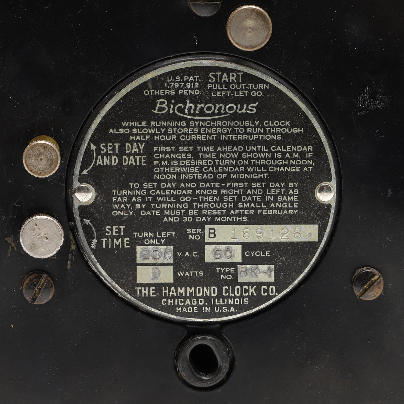4792569. A HAMMOND BICHRONOUS ELECTRIC MANTEL CLOCK.
