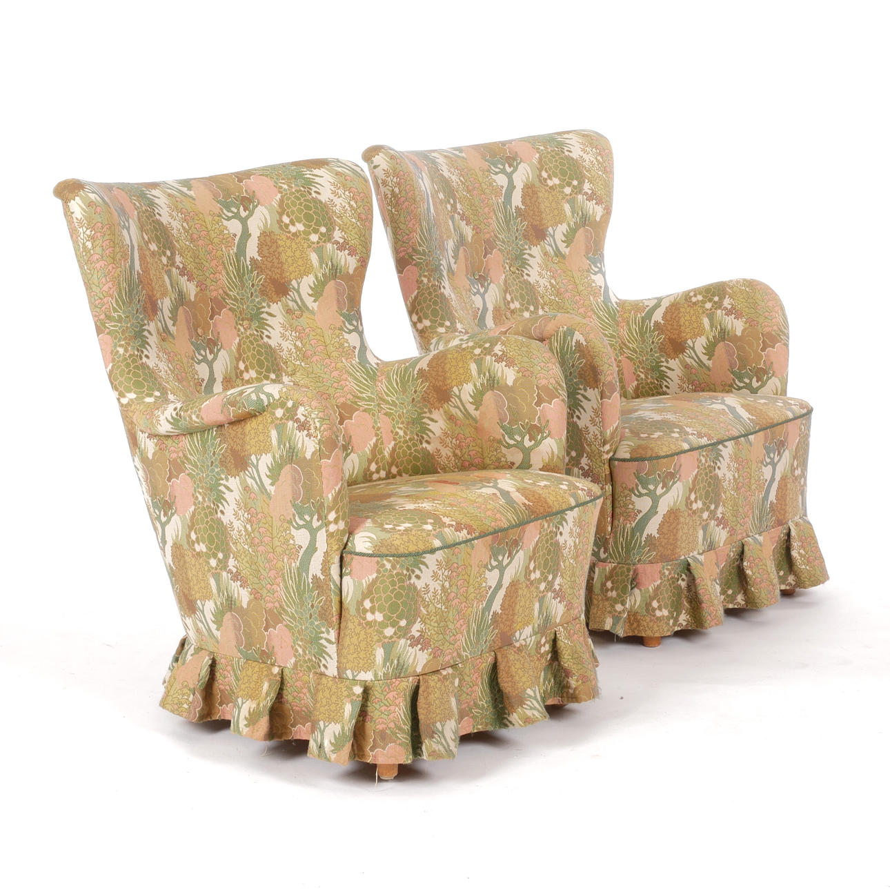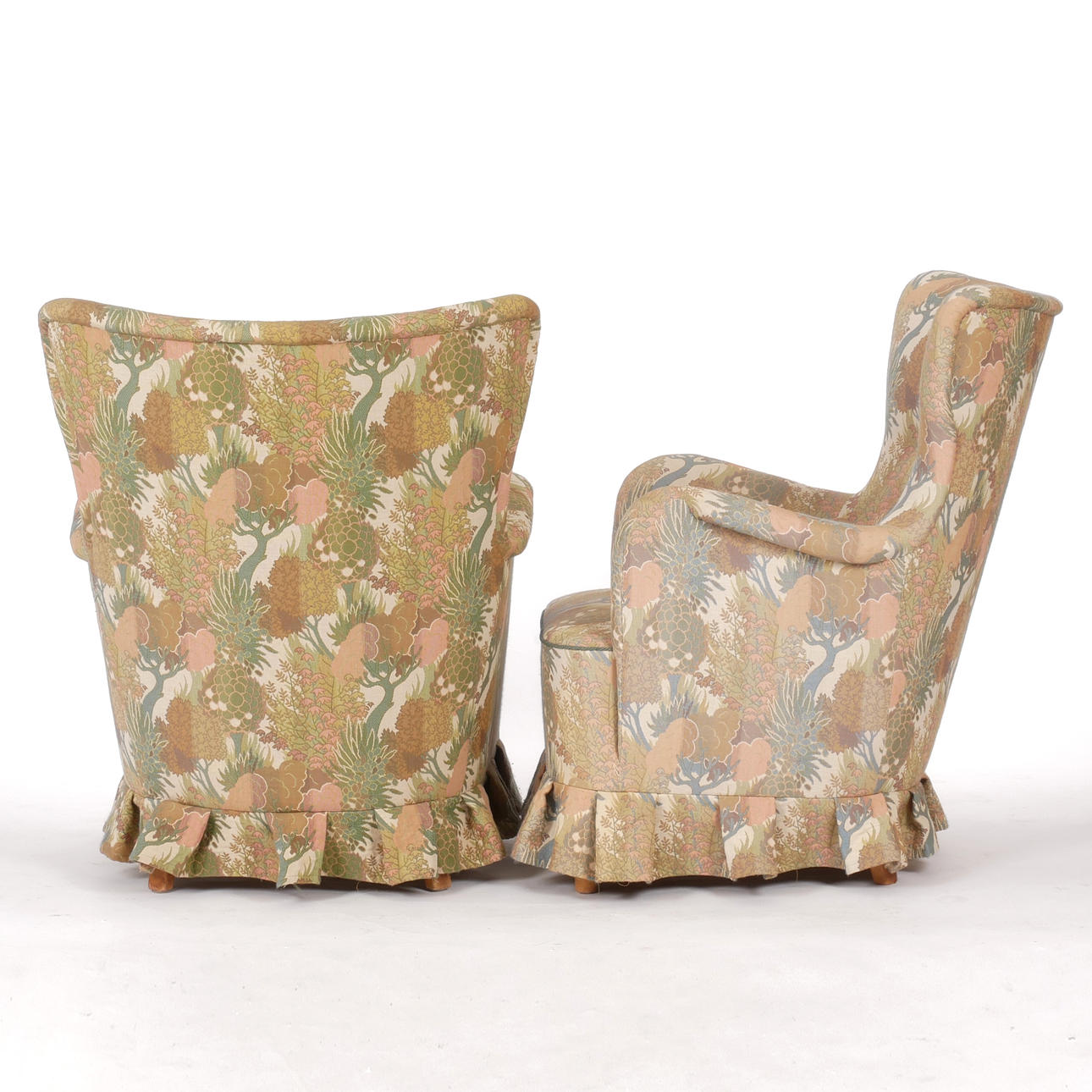 Armchairs width 71 cm, seat height approx. 38 cm back height 89 cm, depth approx. 80 cm.