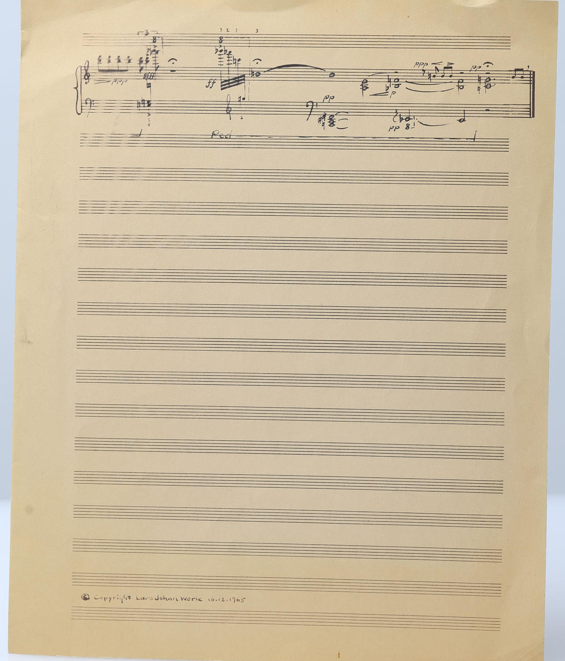 NOTEBLAD, “Attitudes”, with dedication from Lars Johan Werle to Max Walter Svanberg, dated 16.12.1965.