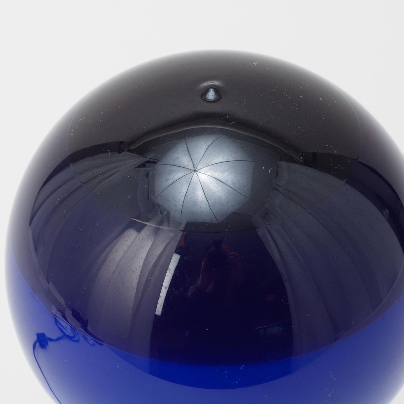Metal frame. Glass cover in different blue tones. Height 23 cm.
