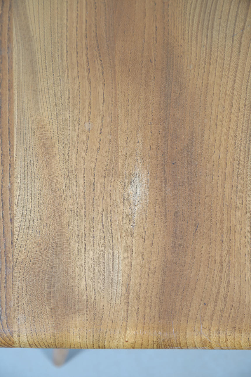 Top has faded a little over time with some watermarks and the odd mark and scratch as you would expect. Legs have faded over time, a little wear around the legs.