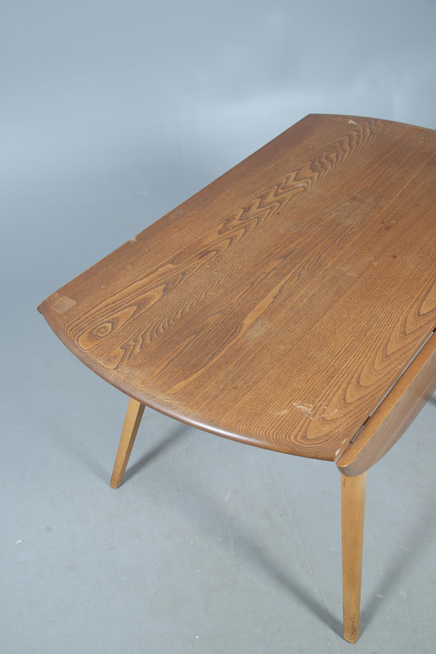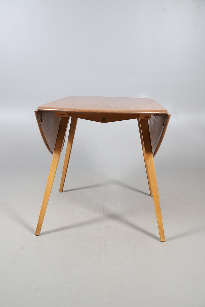 4796815. ERCOL - A VINTAGE ELM AND BEECH DROP LEAF TABLE, MODEL 384.