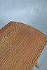 with a light elm top and supported on splayed beech legs, with ercol sticker underneath, 112cm x 64cm (124cm fully extended) x 70cm high.