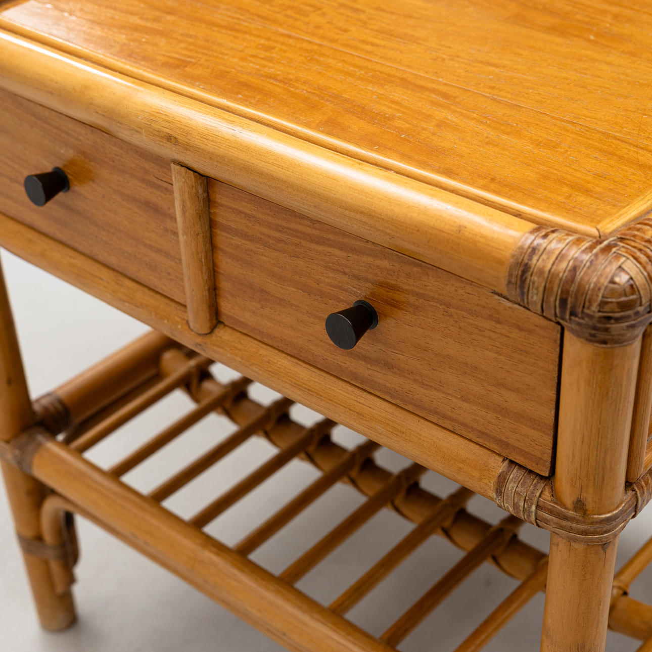 A 1970s-century Bamboo/teak bedside table.