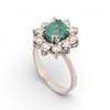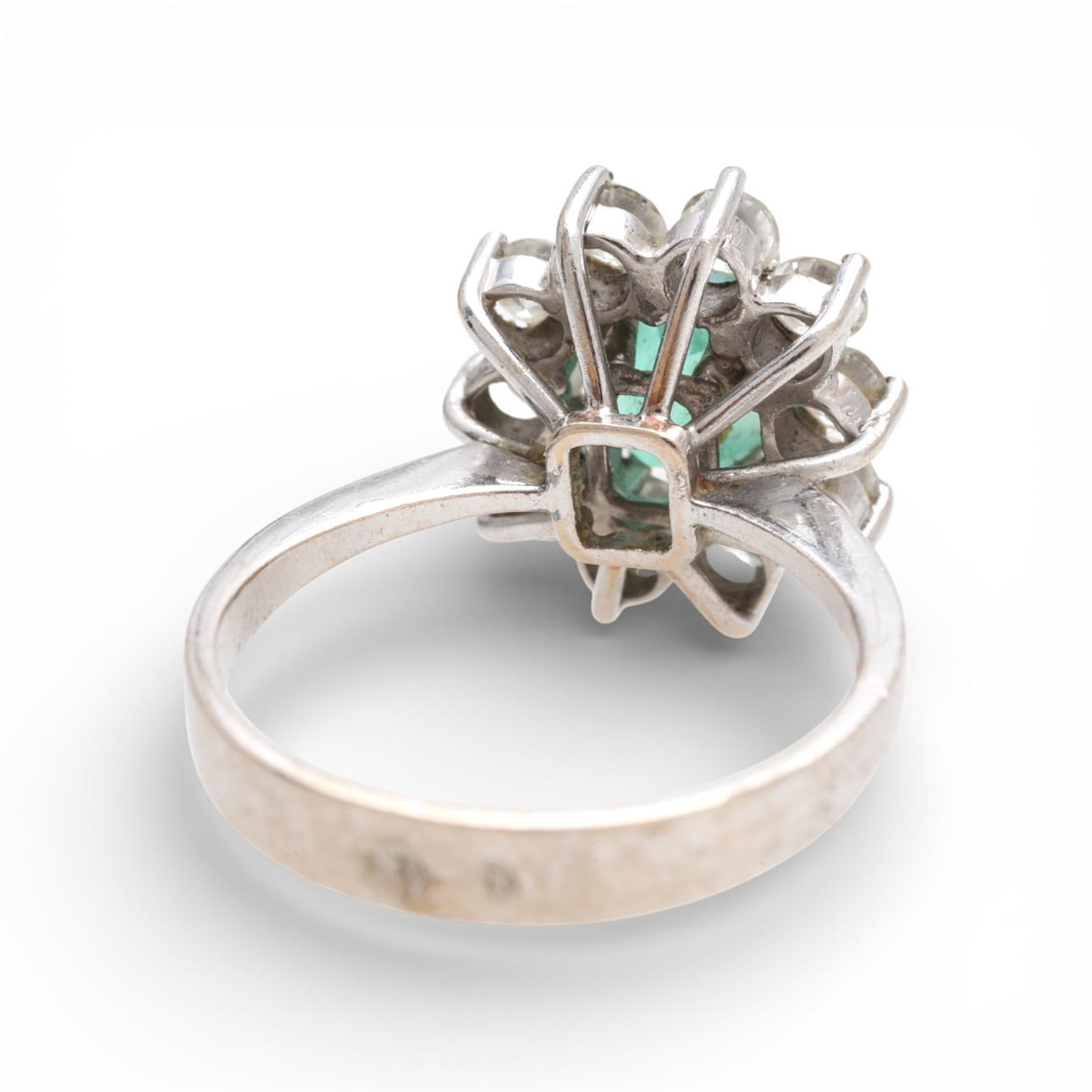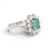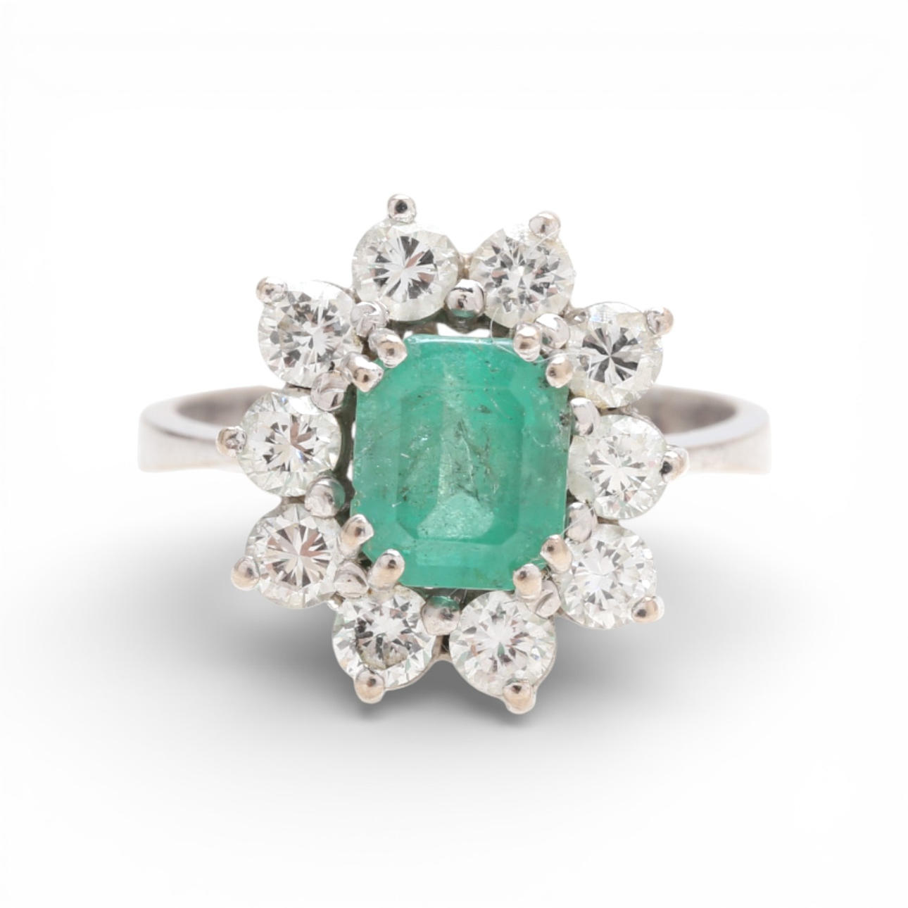 18K white gold, emerald cut emerald, approx. 1.57 cts., and brilliant cut diamonds, approx. 1 cts. Size 14/54. 5 gr.