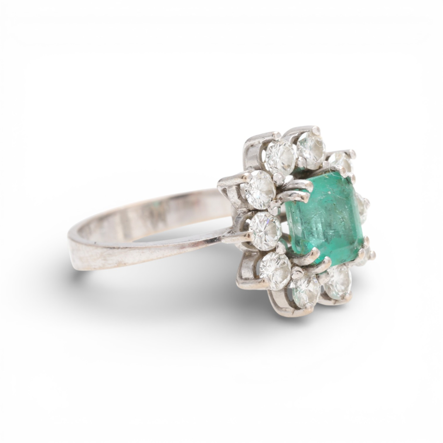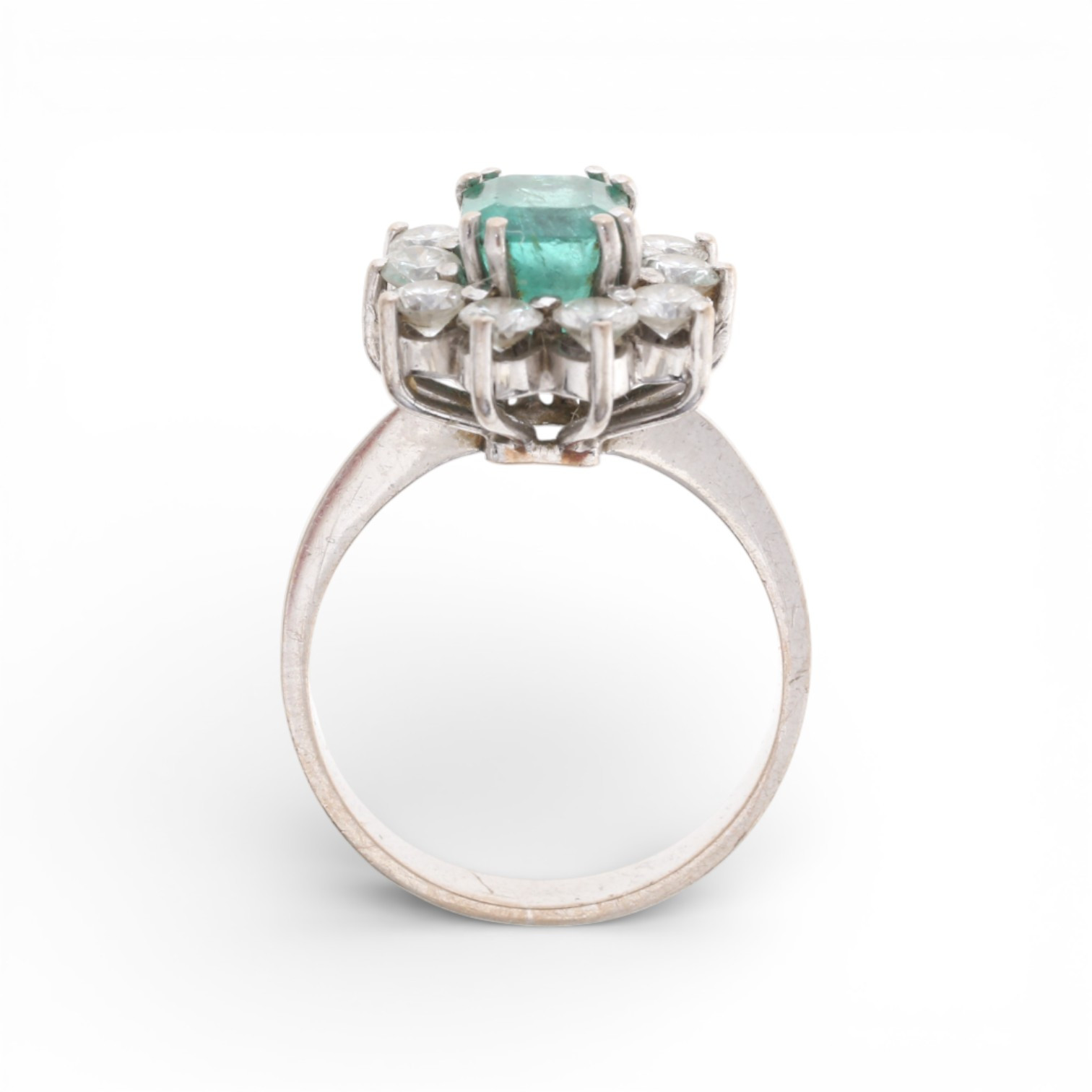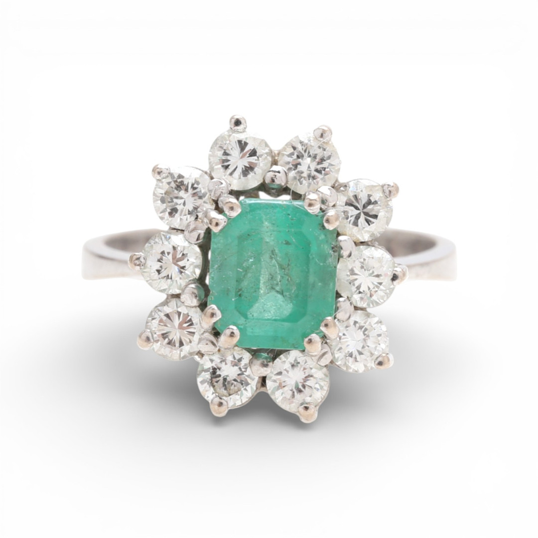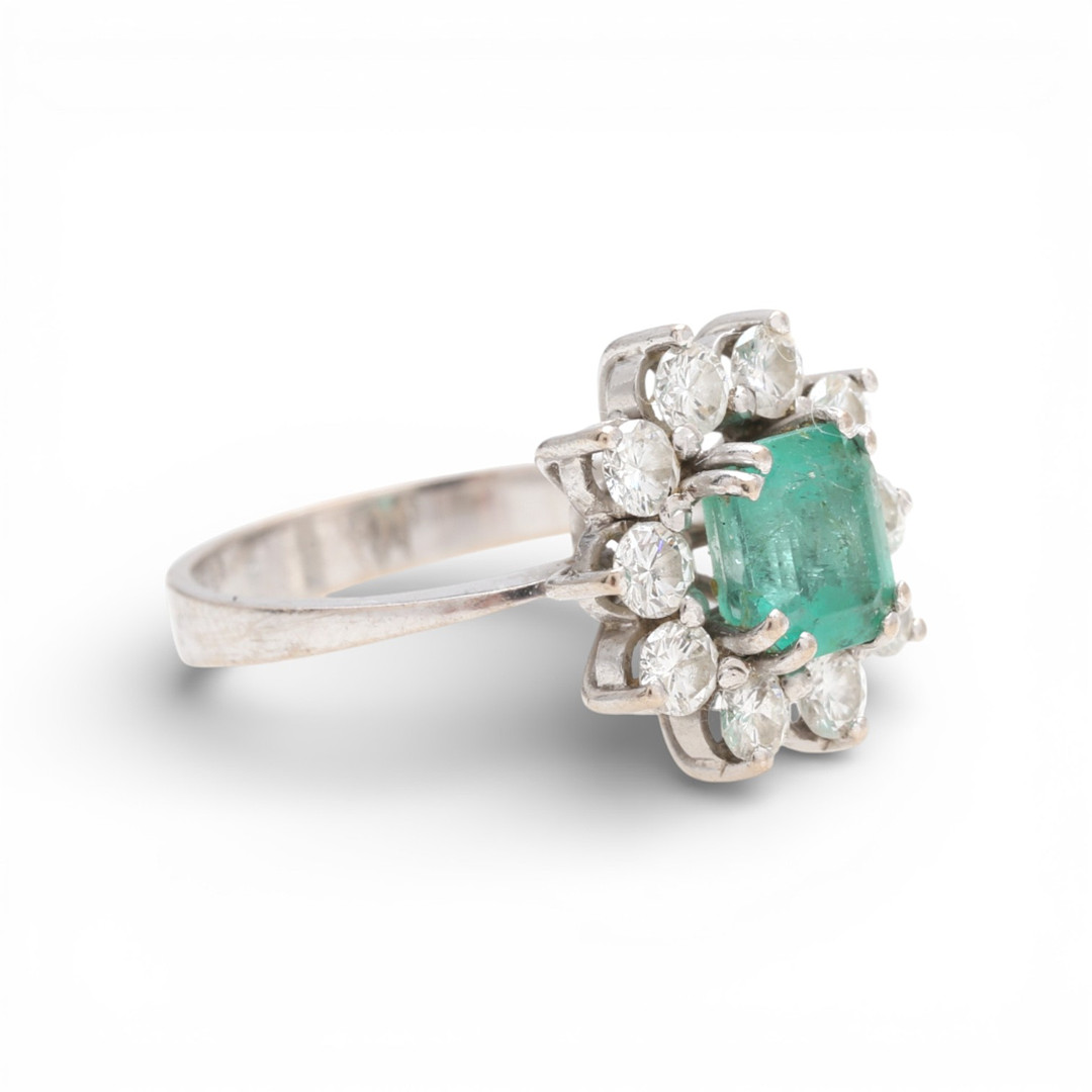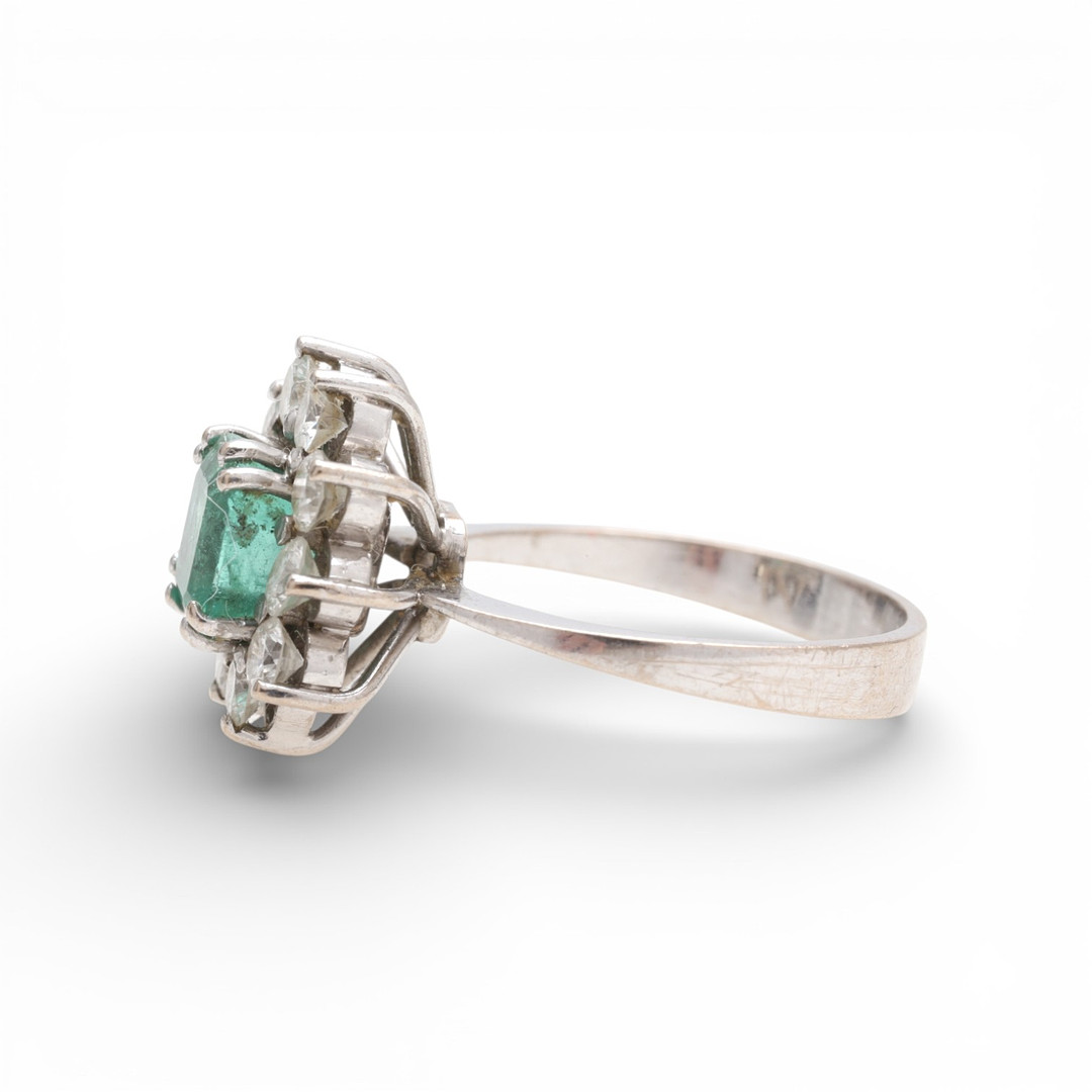 4800484. Emerald and diamonds rosette ring.
