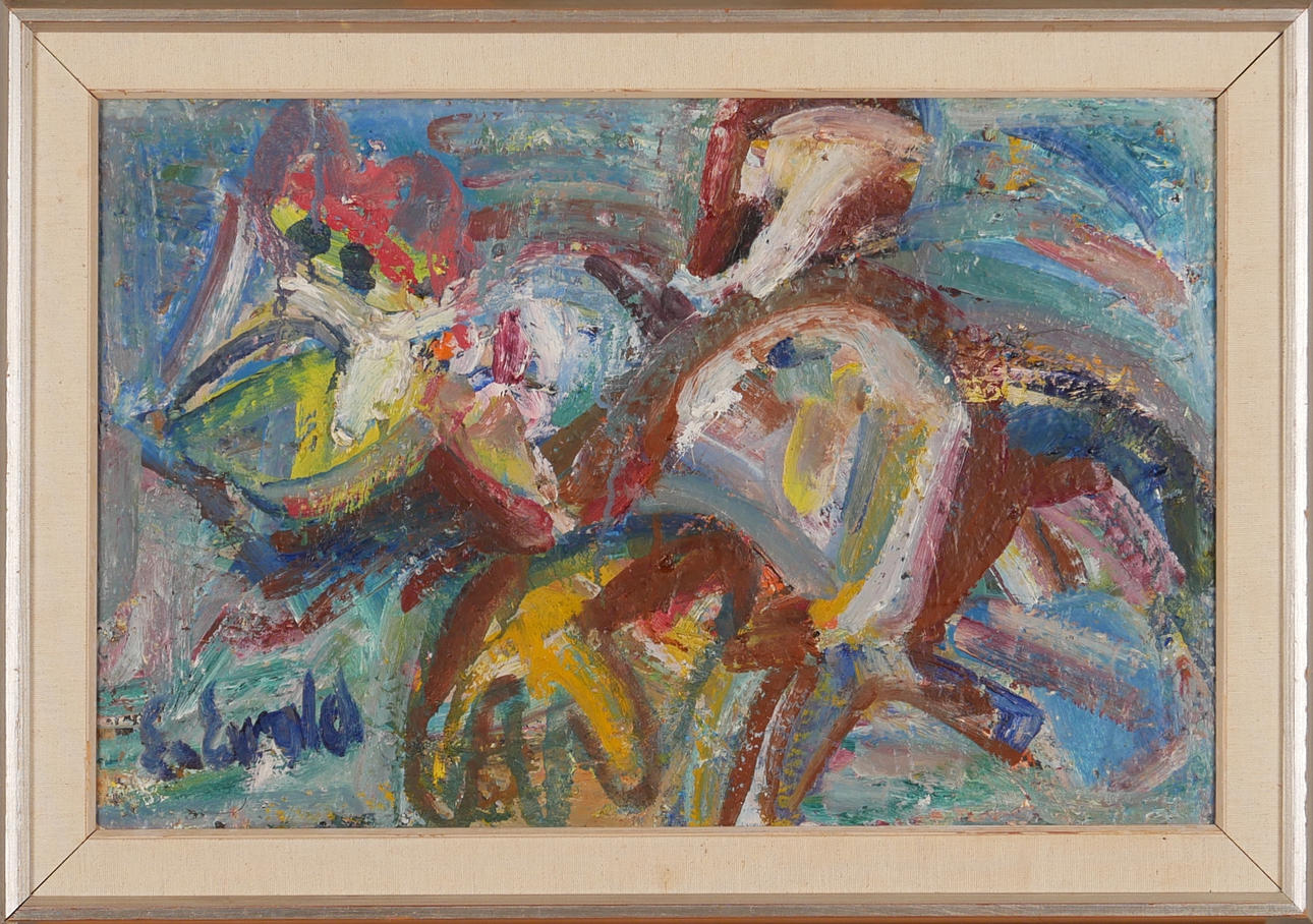 ERIK EWALD. Composition, oil on plate, signed Ewald.