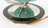 Glass cup, stand in wood and metal.