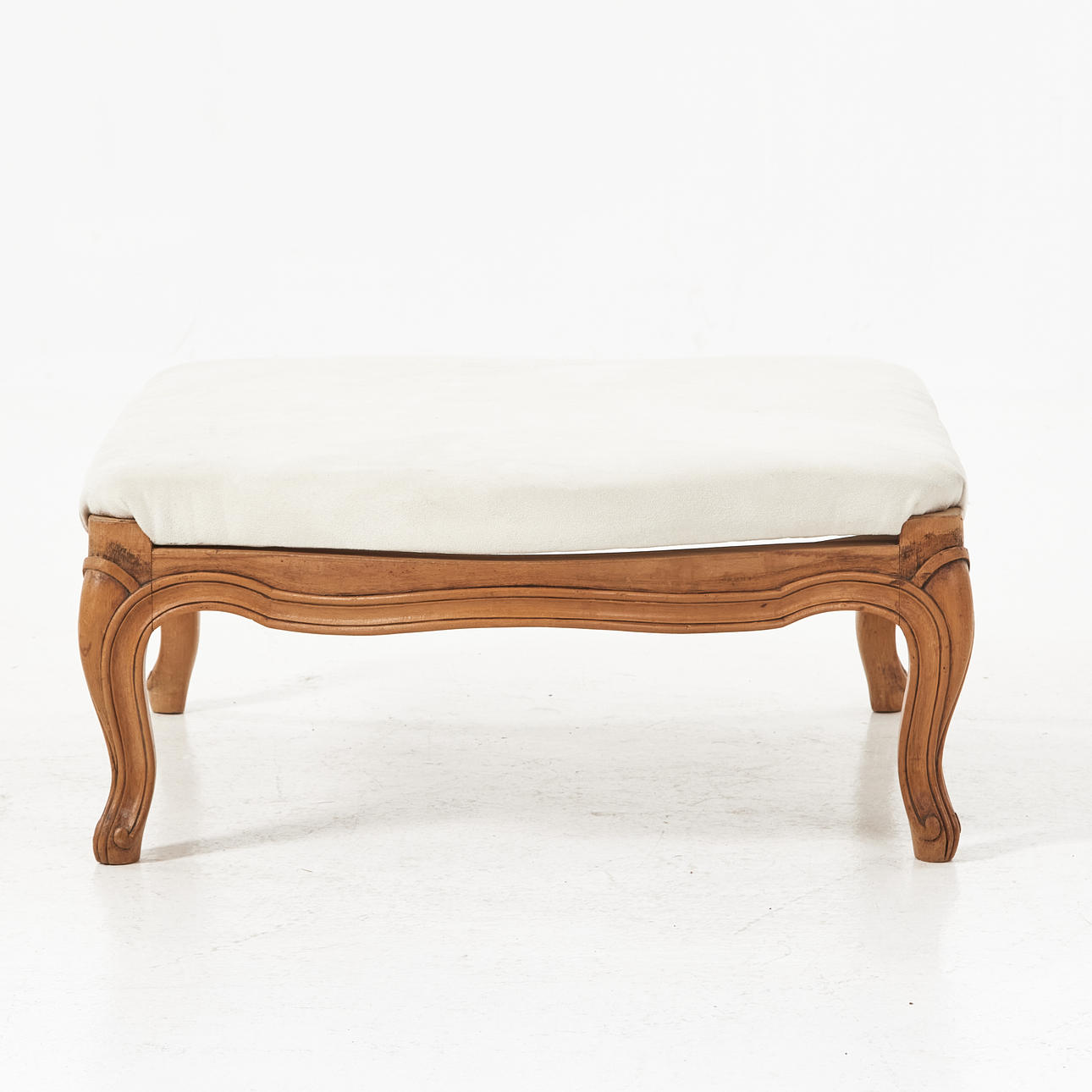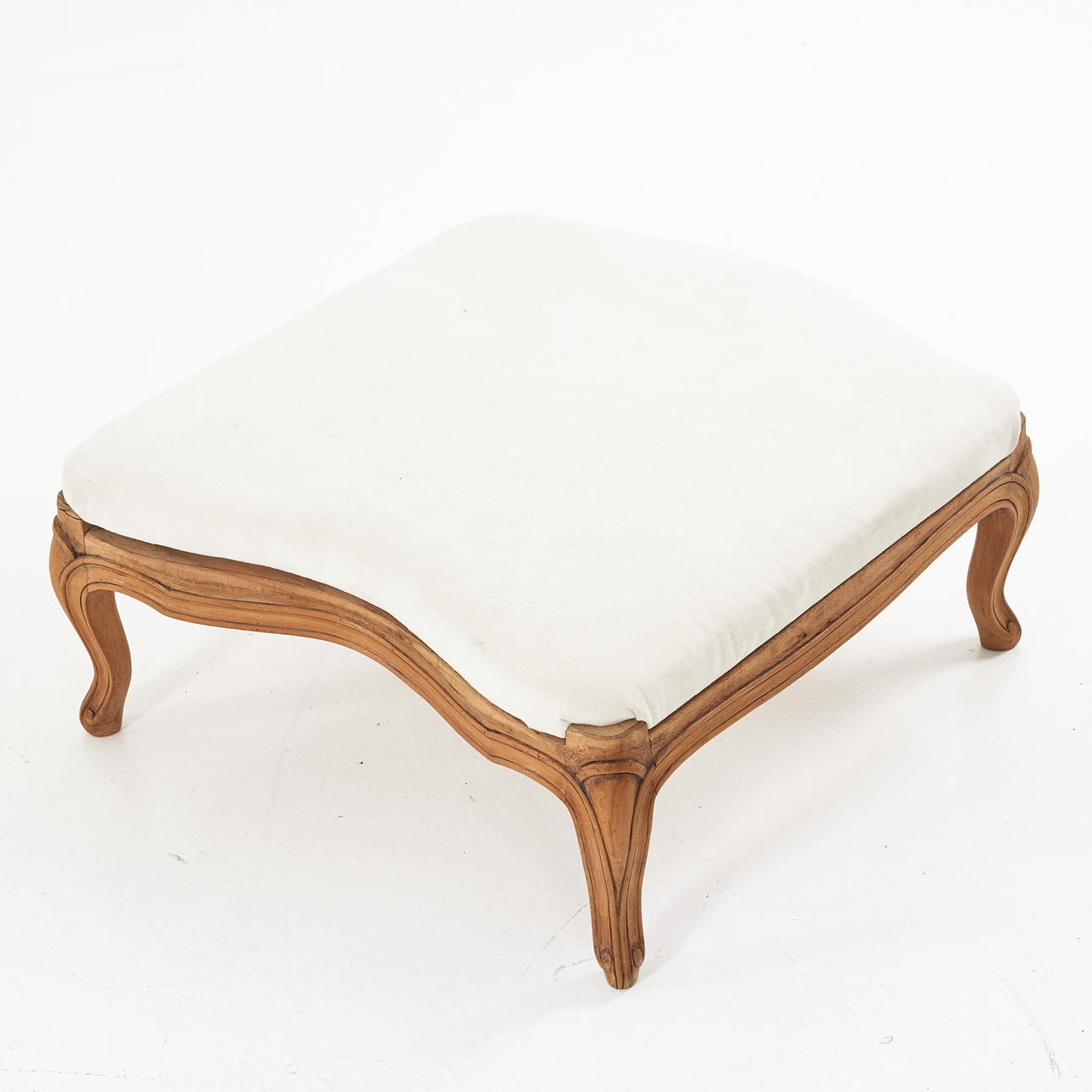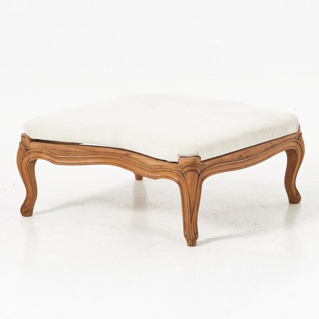 Frame made of wood, removable seat upholstered with suede-like textile. Height 30, approx. 66x66 cm.