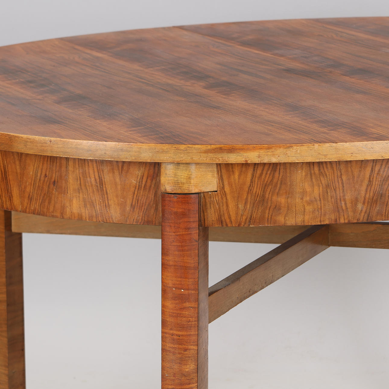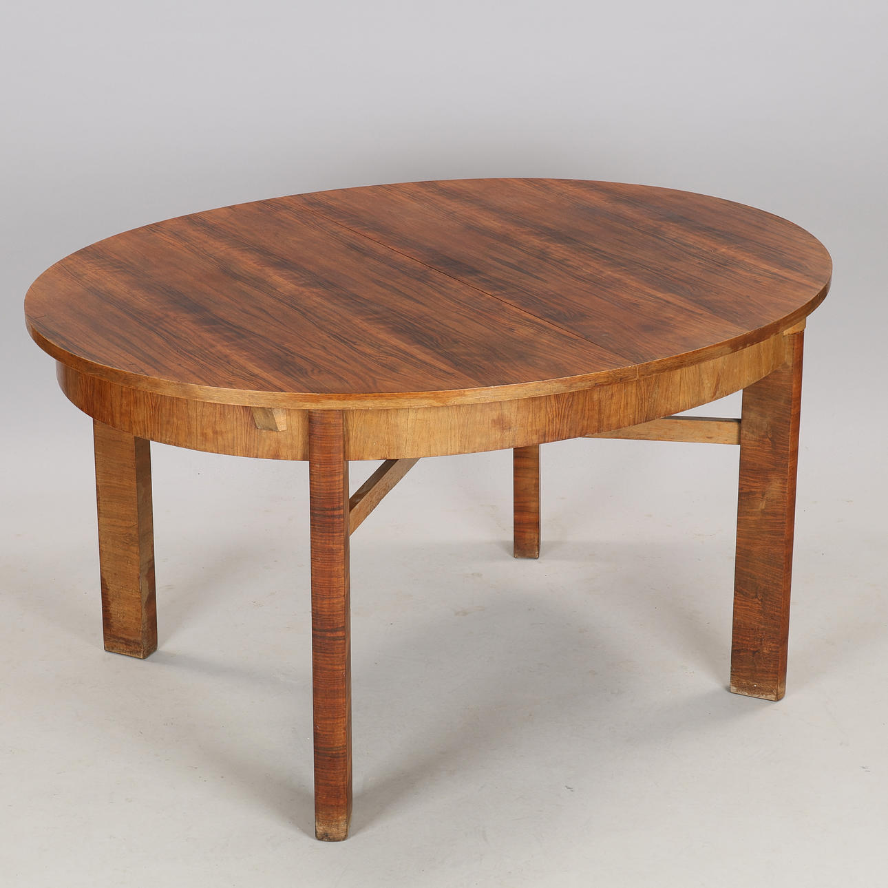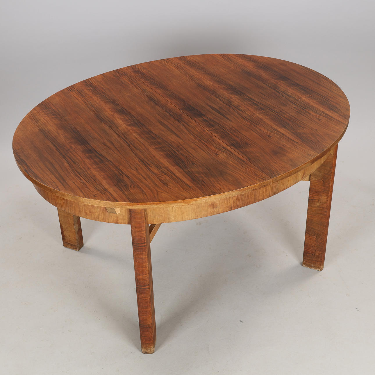 4807899. Oval dining table in veneered walnut, Art Deco, Scandinavian master cabinetmaker, circa 1930s.