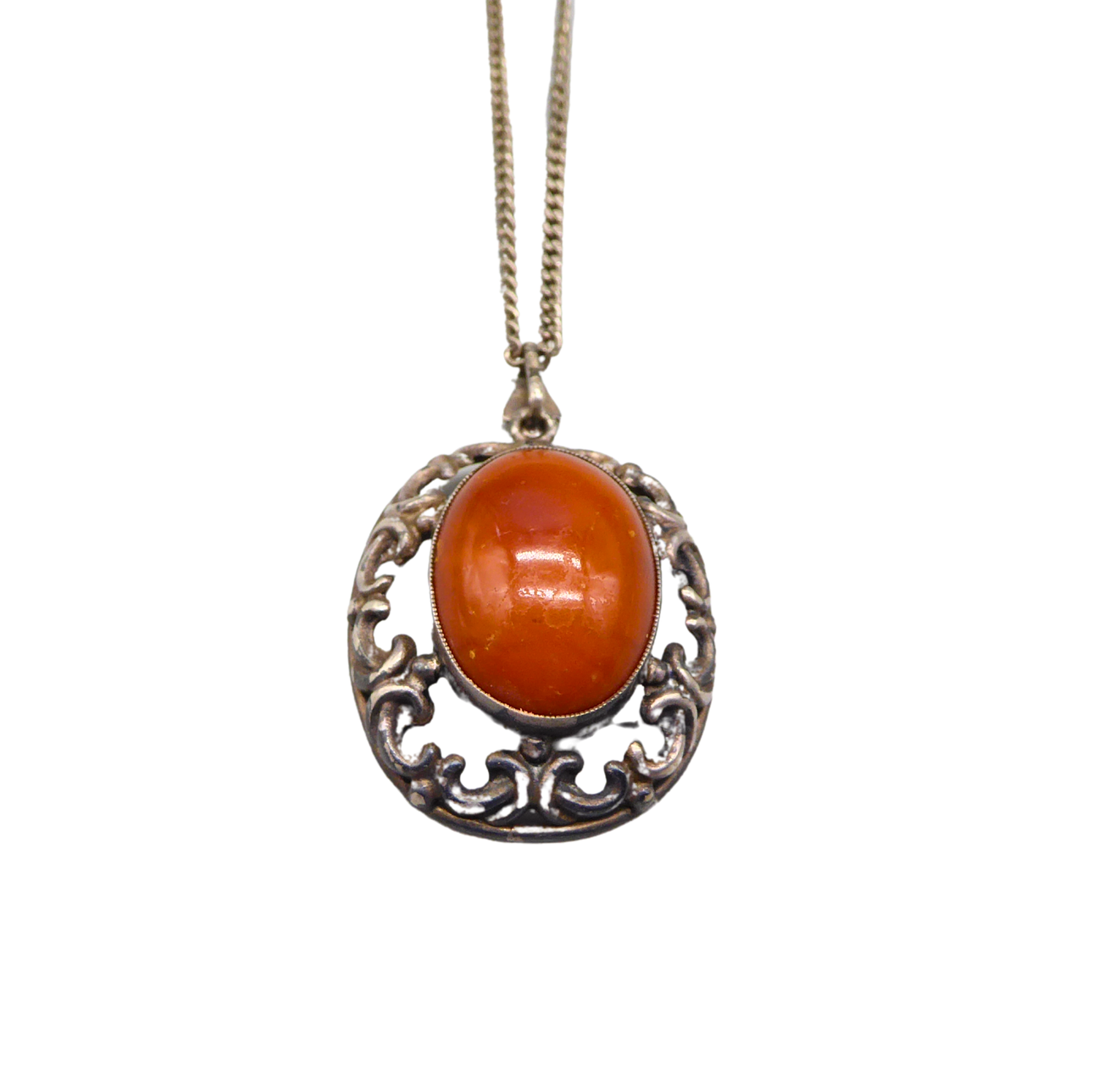 Antique 900 silver necklace with carnelian