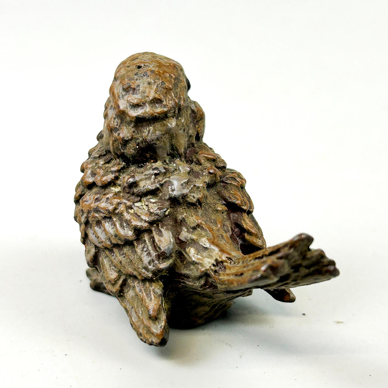 A miniature cold painted bronze figure of a robin, H. 5cm, L. 6cm.