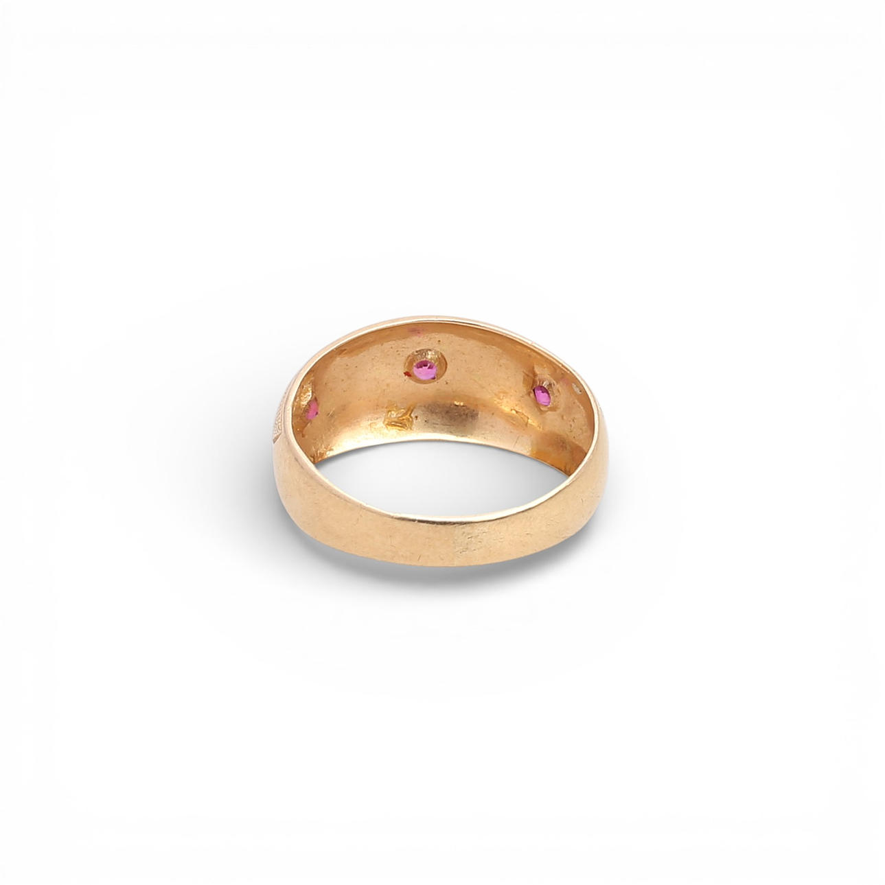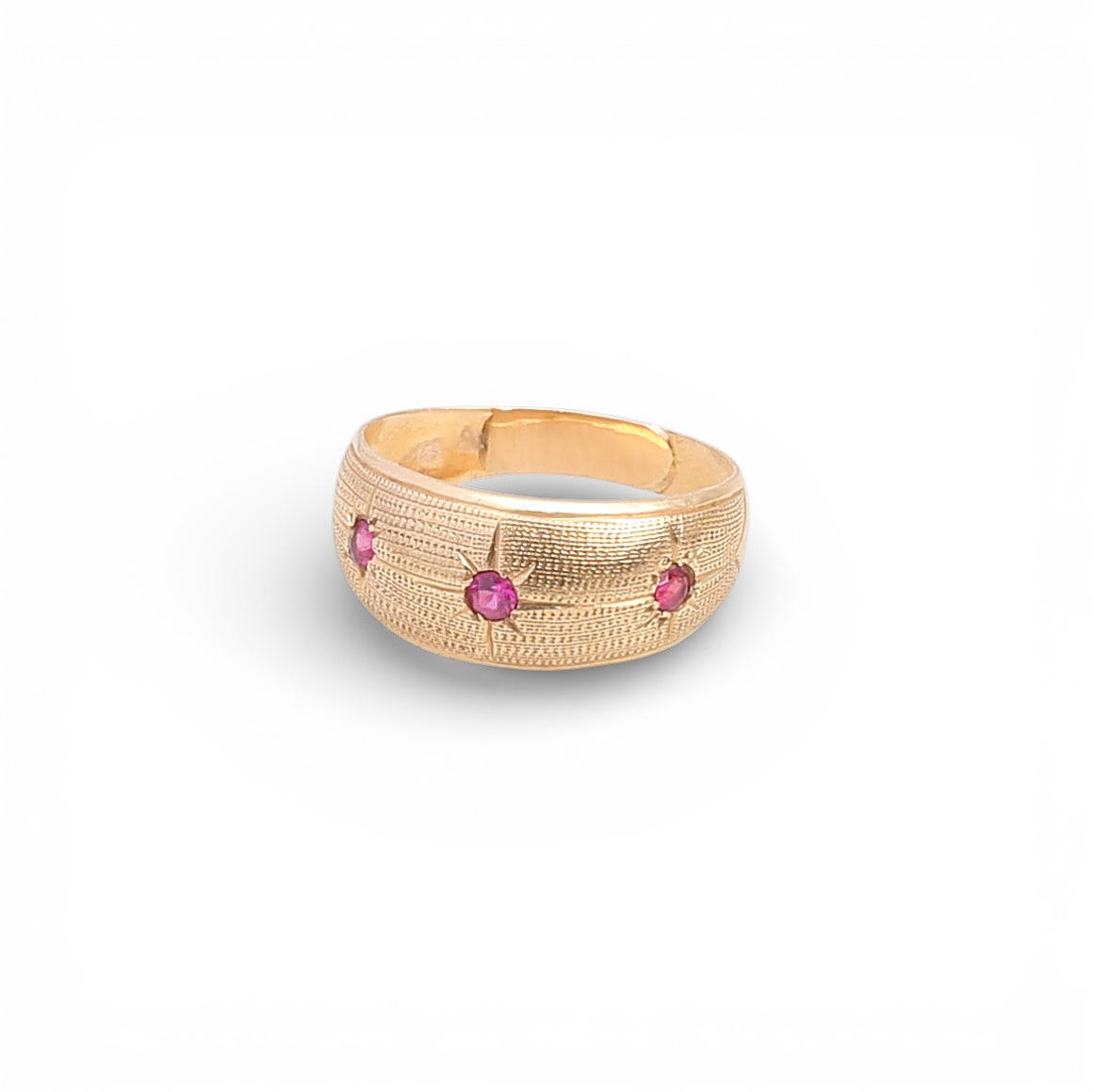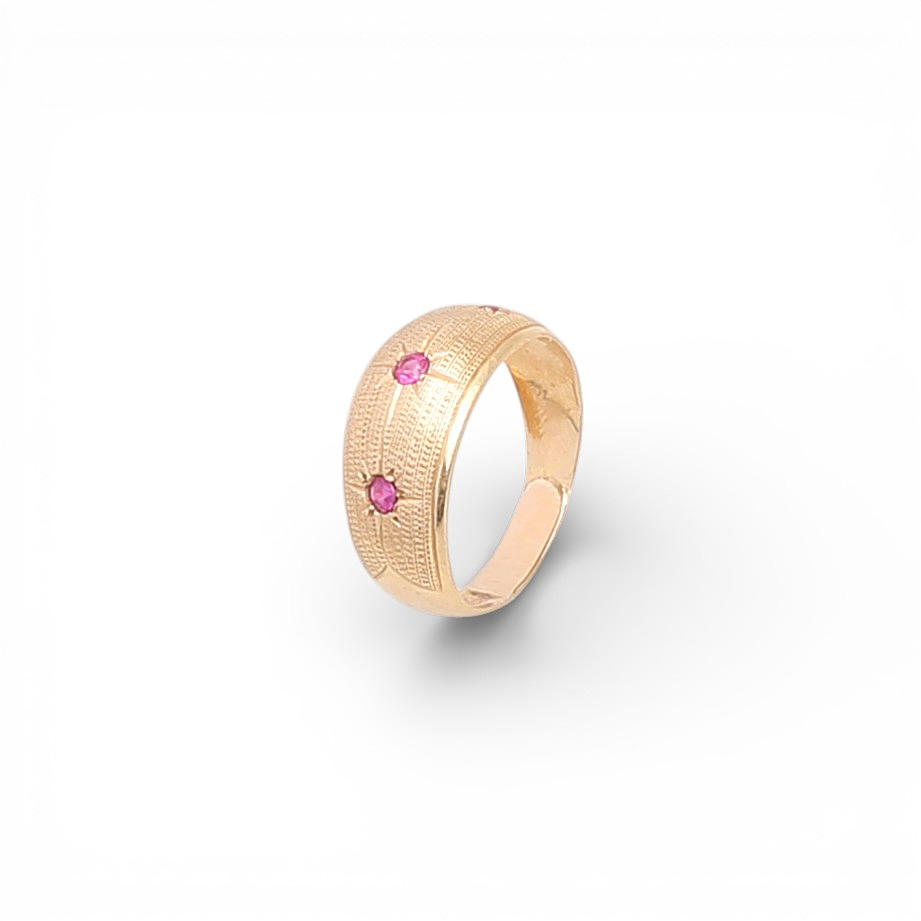 18K gold and round cut synthetic rubies. Size: 11/51. 1.9 gr.