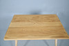 A light elm and beech breakfast table, with a slatted shelf underneath. Top 98cms by 68cms, 74cms high.