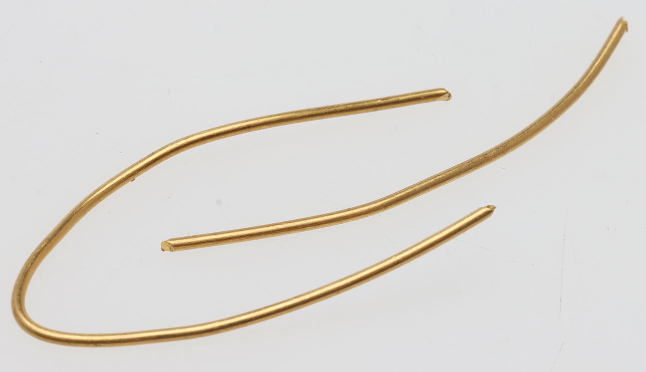 2 pieces of gold wire, weight about 1.8 grams. Thickness of wire about 0.8 mm. Length approx. 4,5 & 8 cm.