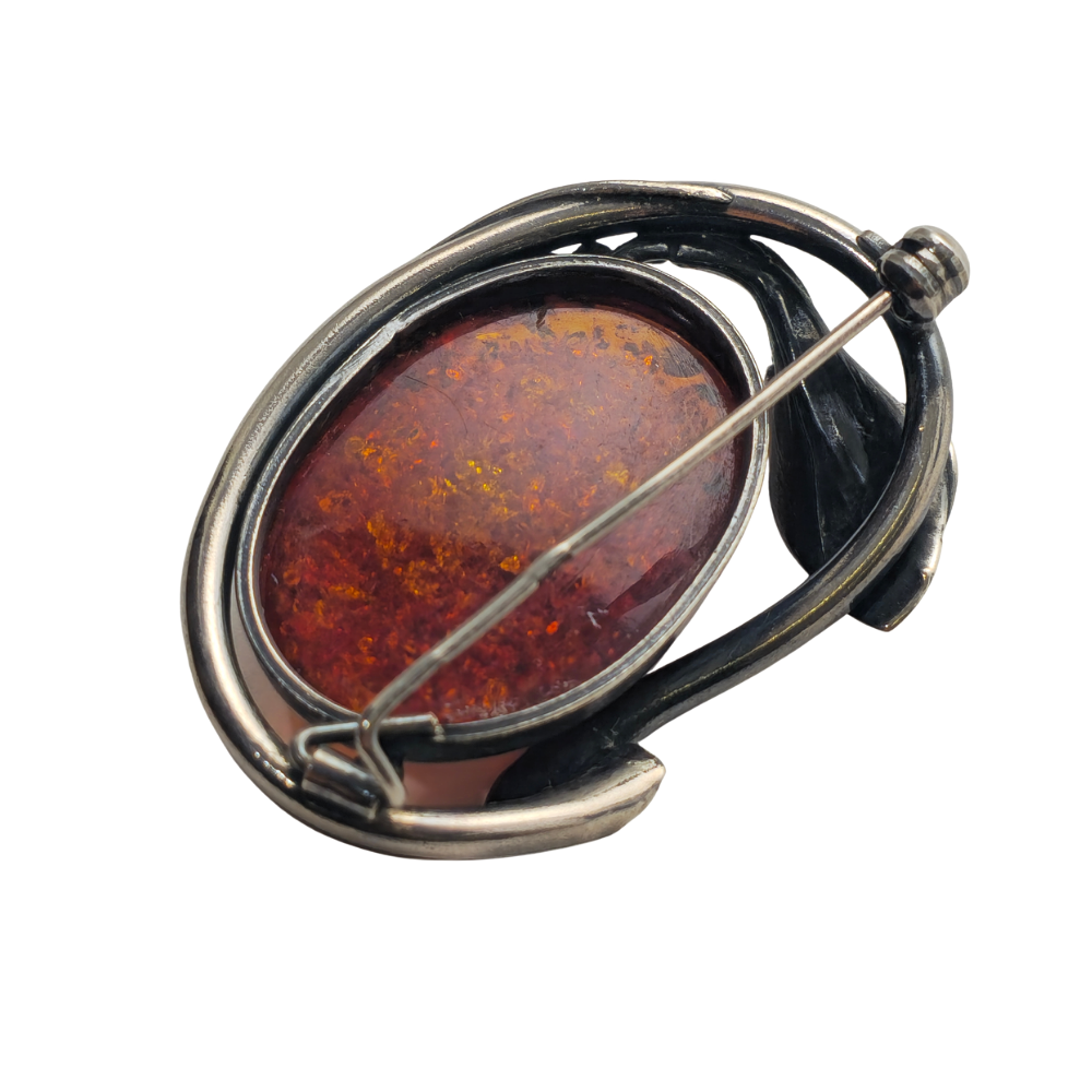 4815844. MODERNIST BROOCH IN SILVER AND AMBER.