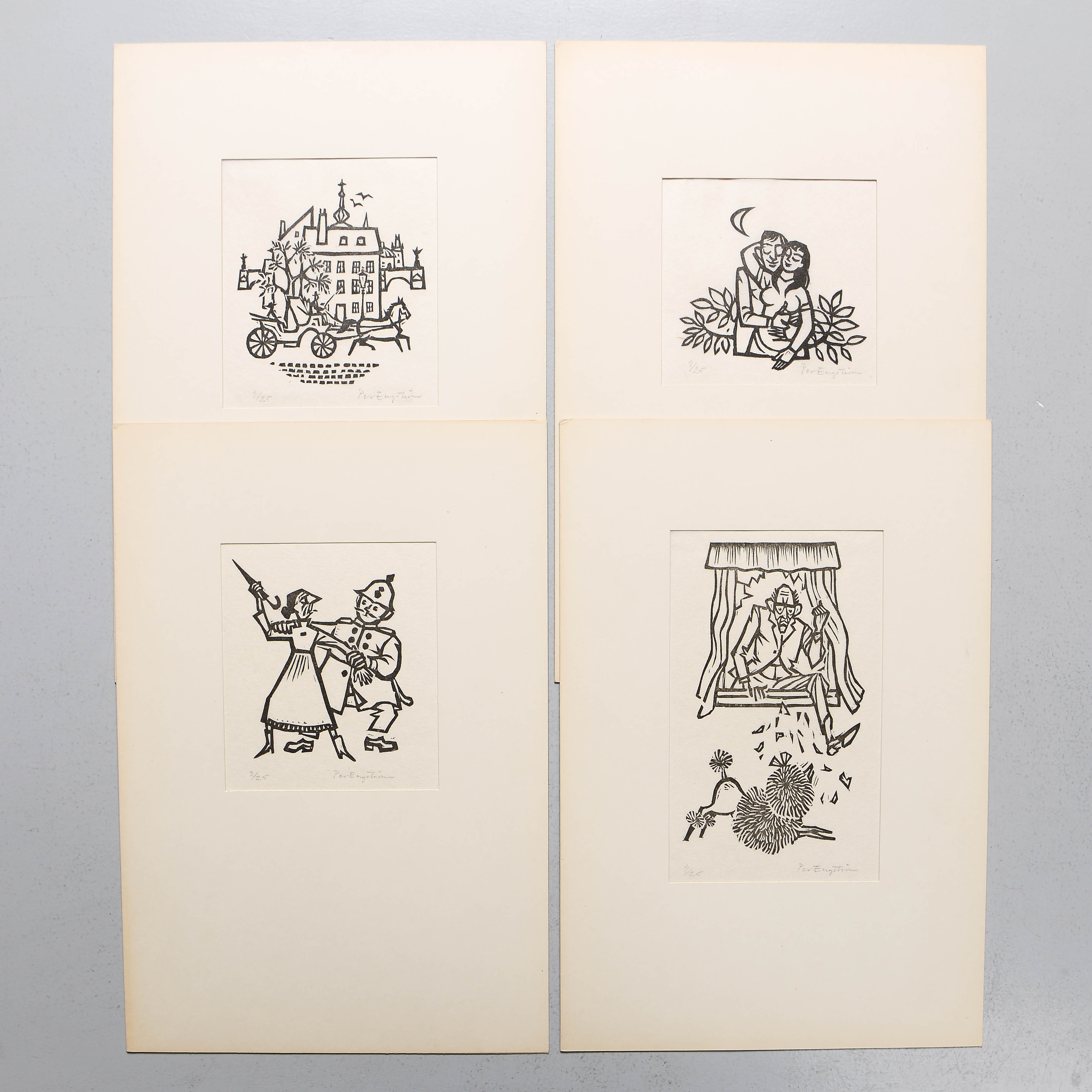 4818072. PER ENGSTRÖM. Composition, 4 pieces, woodcut, numbered.
