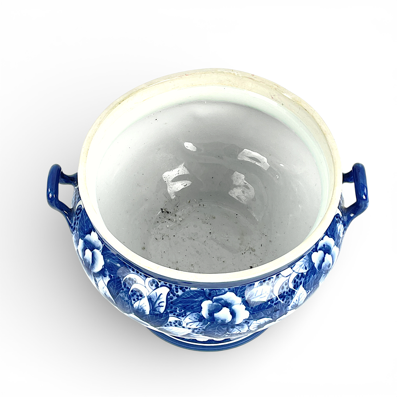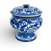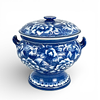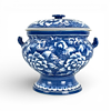 Terrine with underglaze blue, decor of flowers. Height incl cover approx. 26 cm, width incl hangers approx. 27 cm.