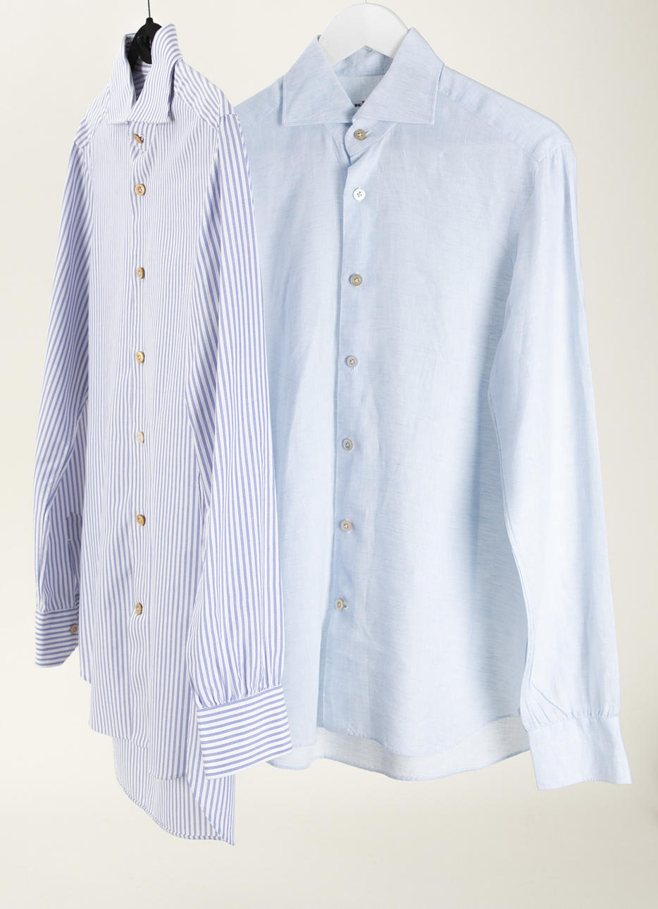 shirt in light blue, 100% linen L x shoulder width: approx. 78 x 47 cm, sleeve length approx. 66 cm;