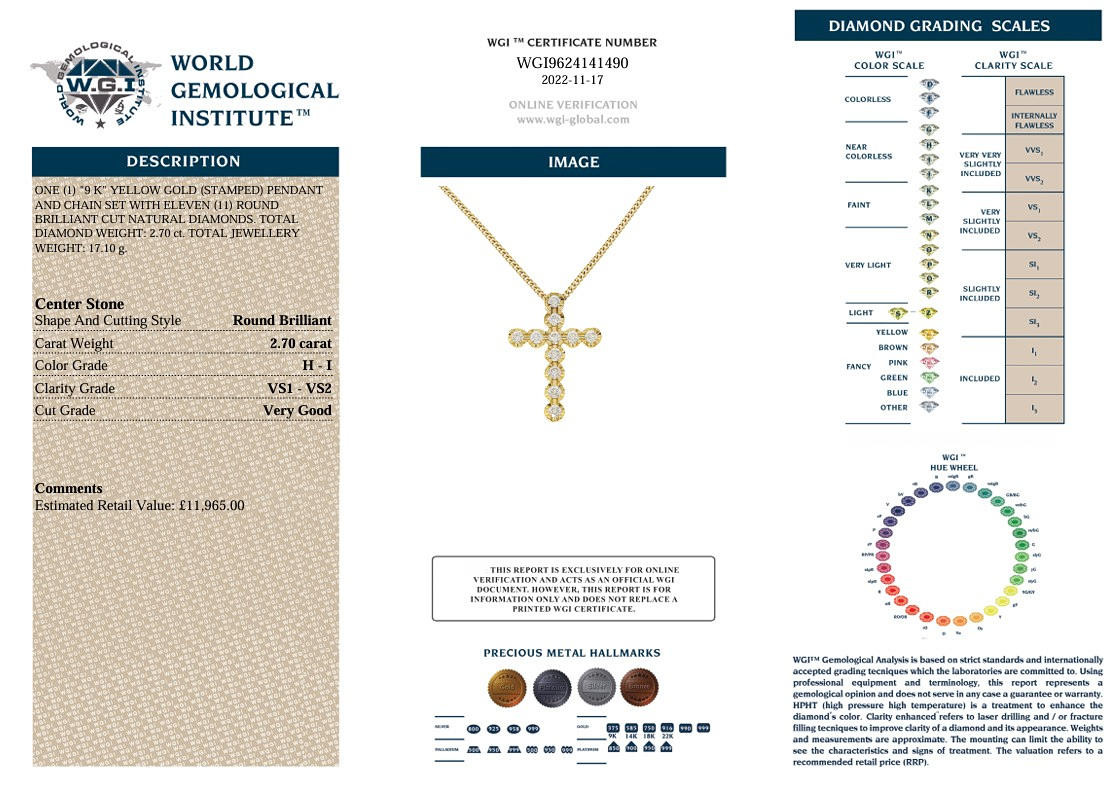 This striking cross and diamonds have been independently certified by WGI London under certificate number WGI9624141490, the certificate accompanies the item.