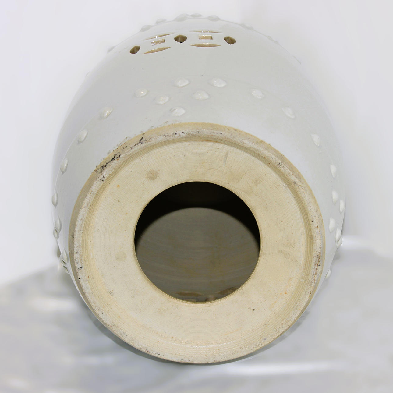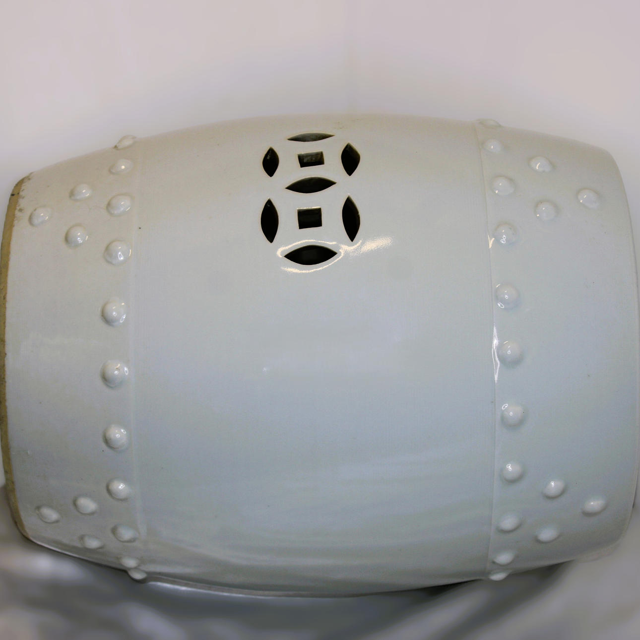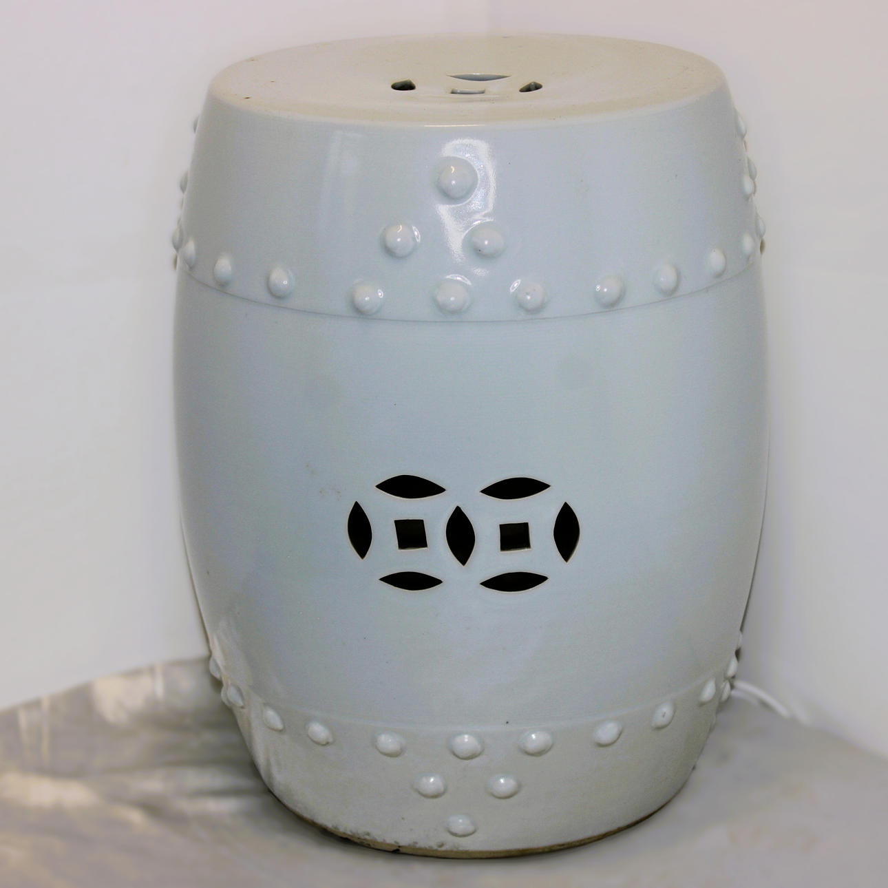 WHITE CERAMIC STOOL.