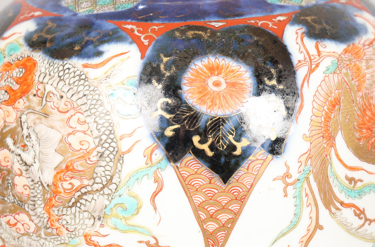 4824818. A JAPANESE IMARI PATTERN VASE WITH DRAGON DECORATION.