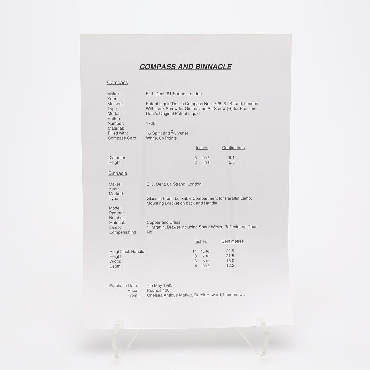 COMPASS WITH BINNACLE, E.J Dent, London, copper and brass.