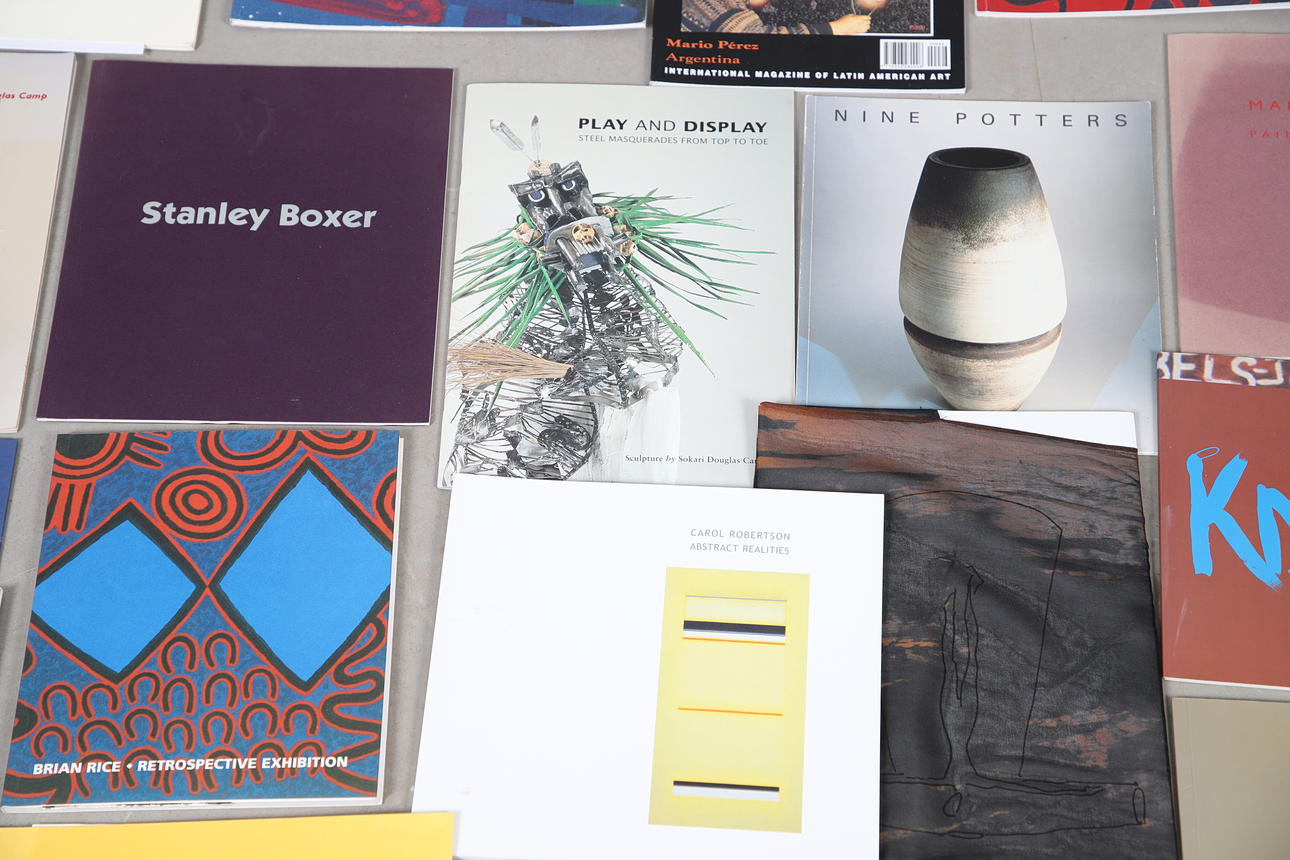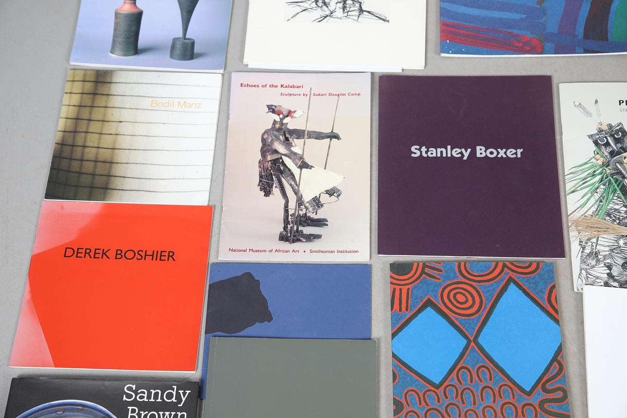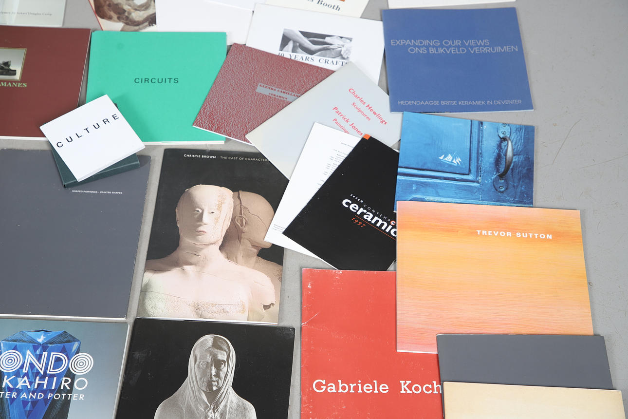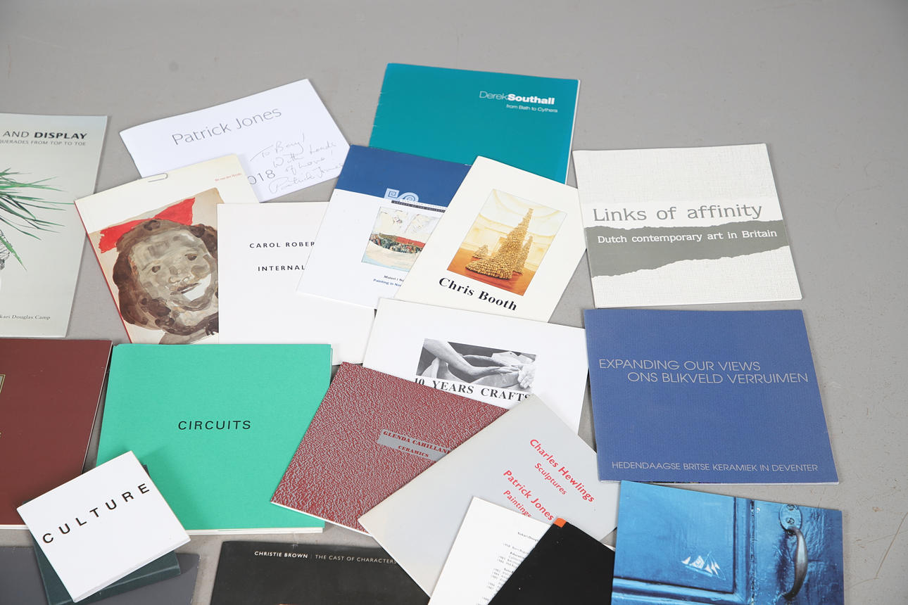 An interesting collection of Art and Studio Pottery exhibition catalogues/booklets, including Frank Auerbach The Complete Etchings (1954-1990), Patrick Jones, Angus Suttie, Joslyn Tilson, Sokari Douglas Camp, Brian Rice, Trevor Sutton, Sandy Brown, Ewen Henderson, Christie Brown, Gabriele Koch, and many more.
