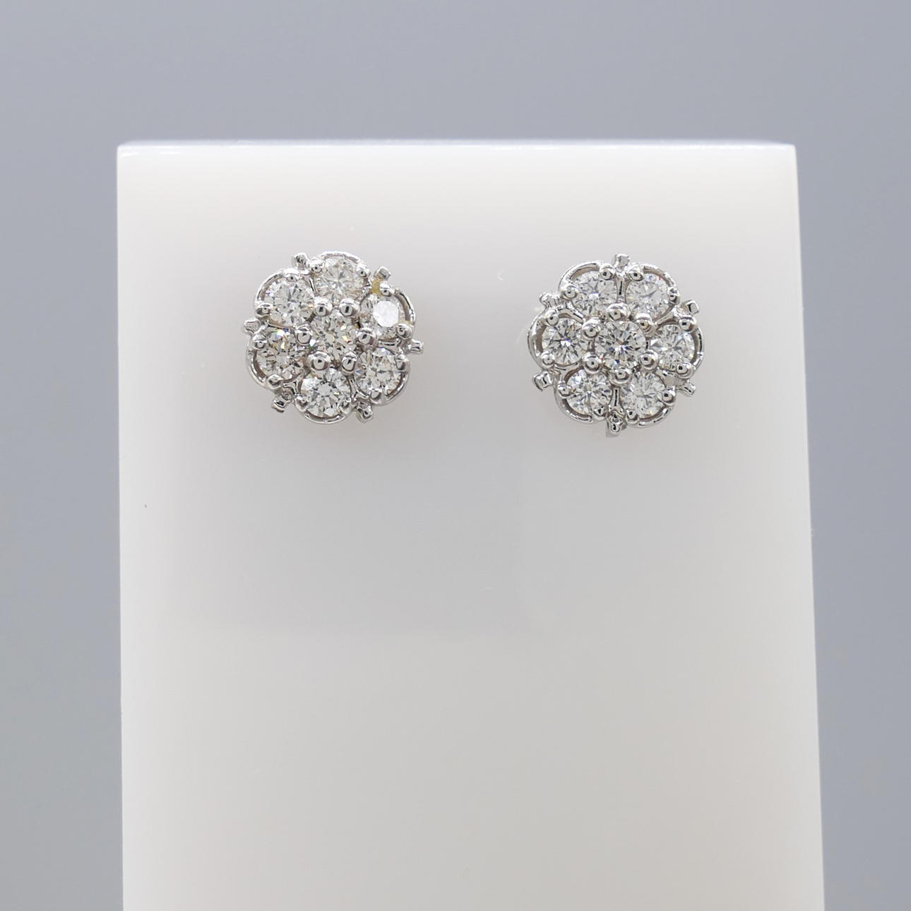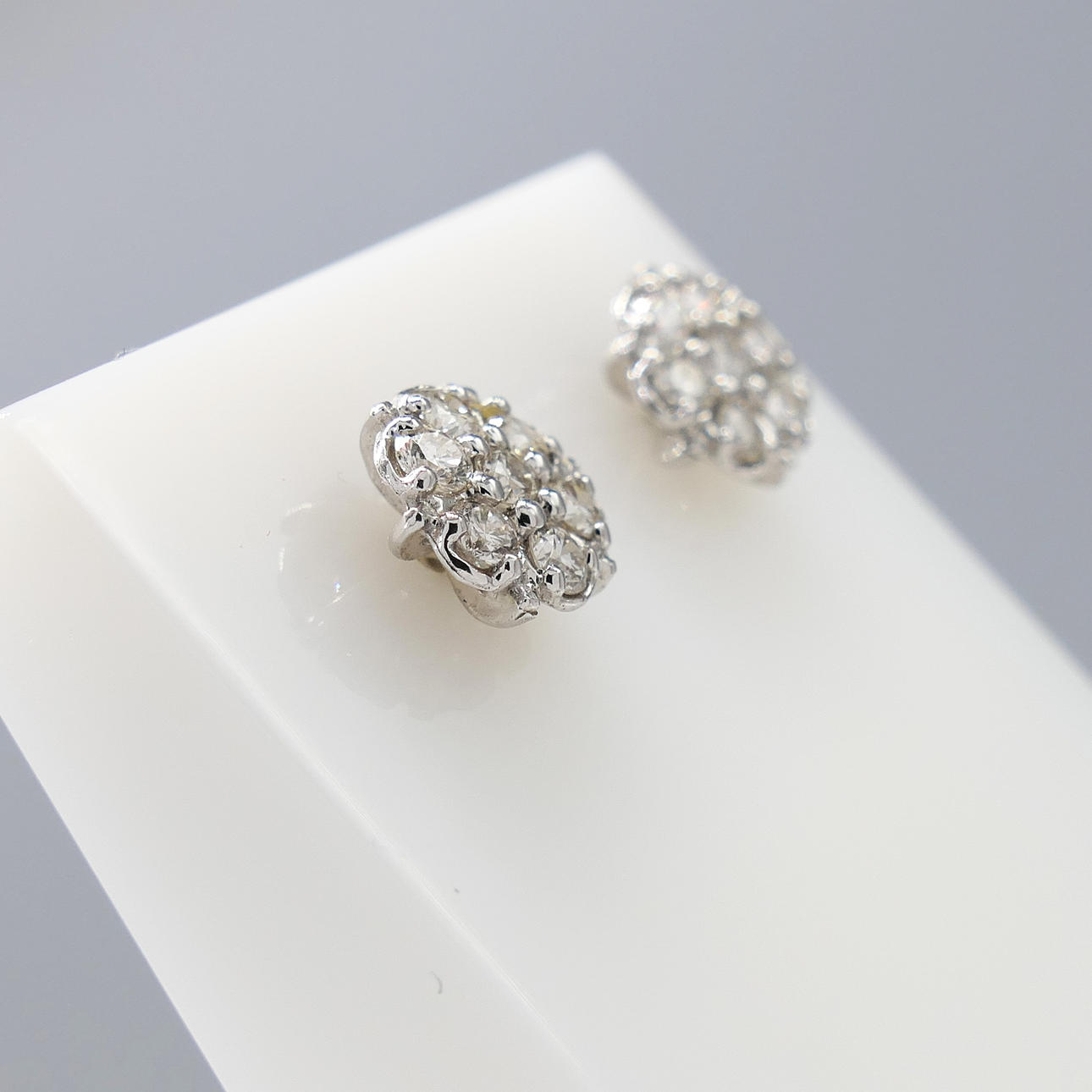 Earrings: 18k white gold as hallmarked; weight 6.4 grams