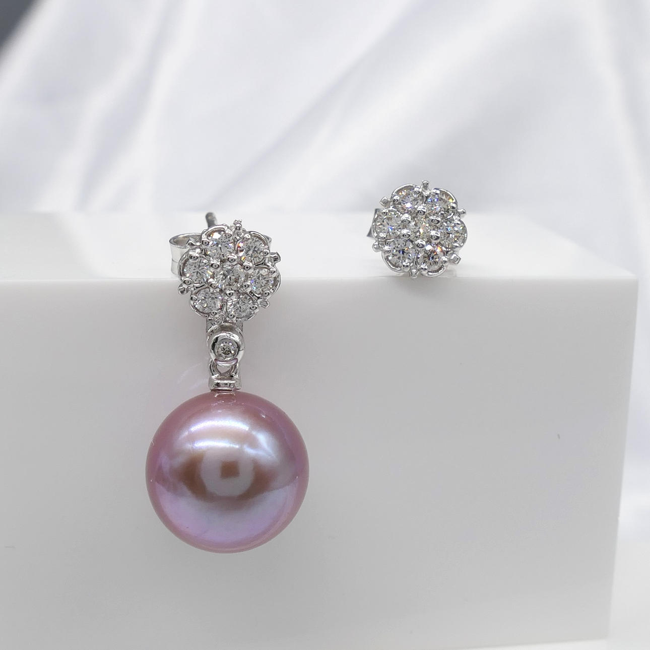 Design: drop length 21mm; bales may be detached to be worn as diamond daisy cluster studs (see photos)