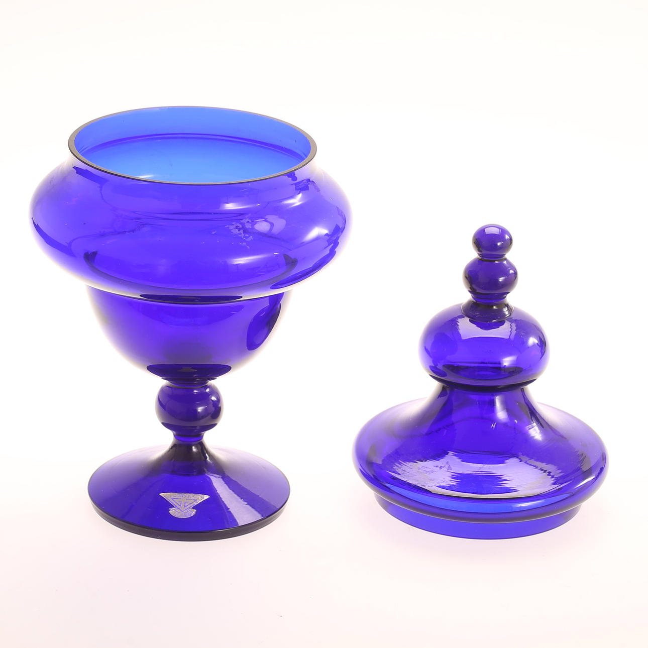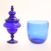 2 bowls, height about 10 - 16 cm. 1 Barrel, height approx. 5 cm, diameter approx. 25 cm. 1 Lid bowl, gullaskruf, height approx. 28 cm.