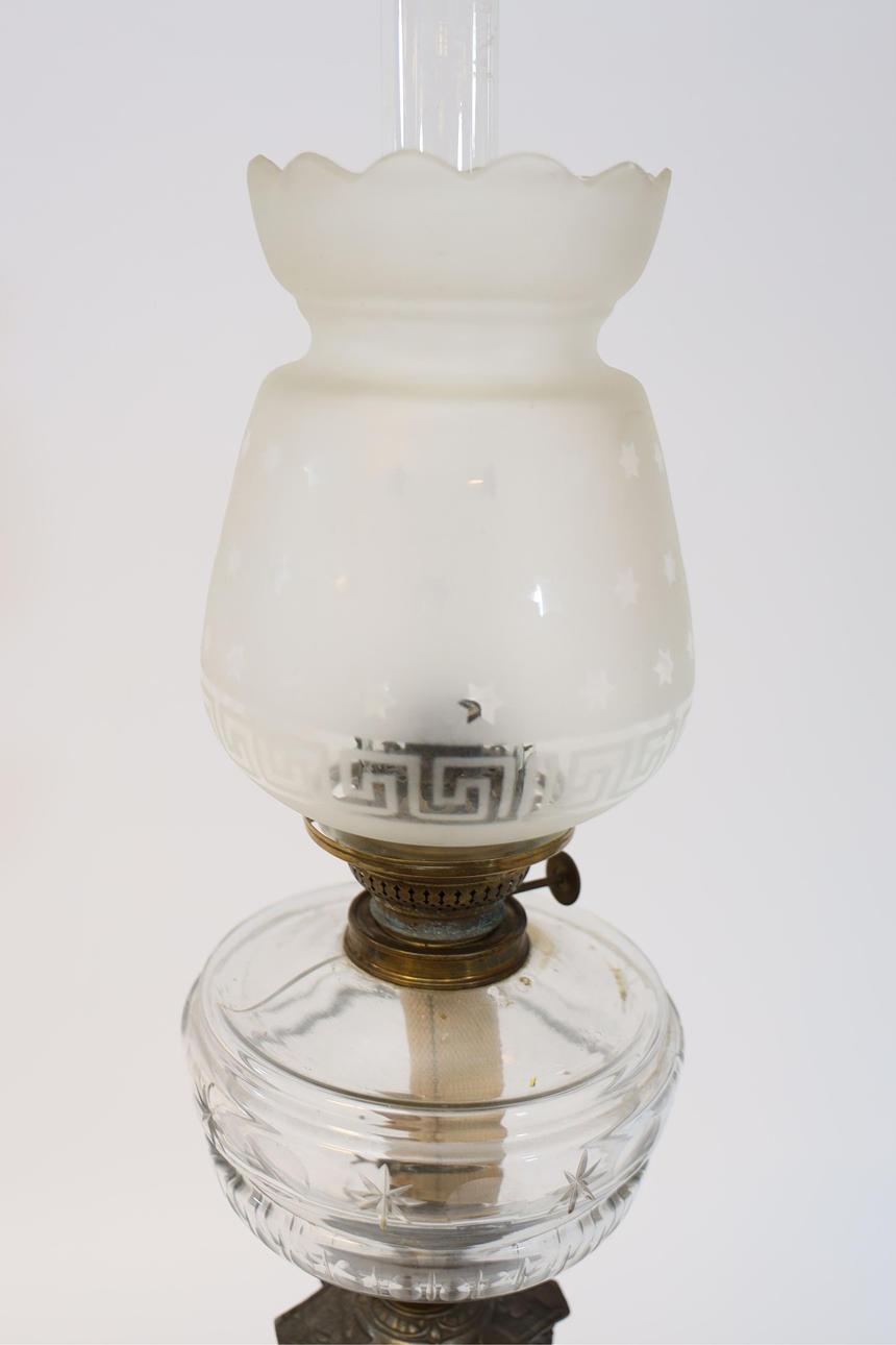Body in castings. sanded oil casing with stars, among other things. Mug with frosted decoration of stars and meander border. Height 85cm.