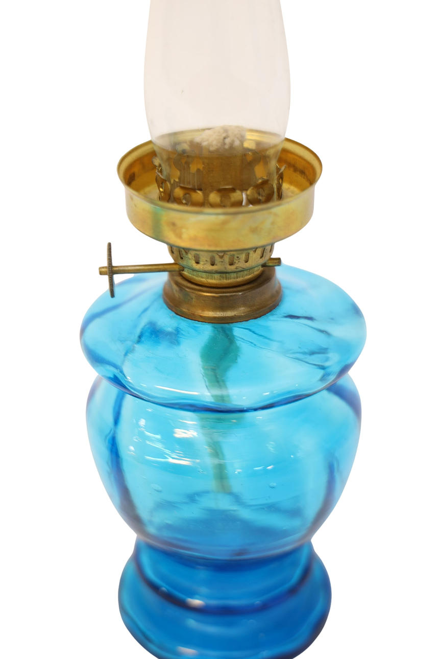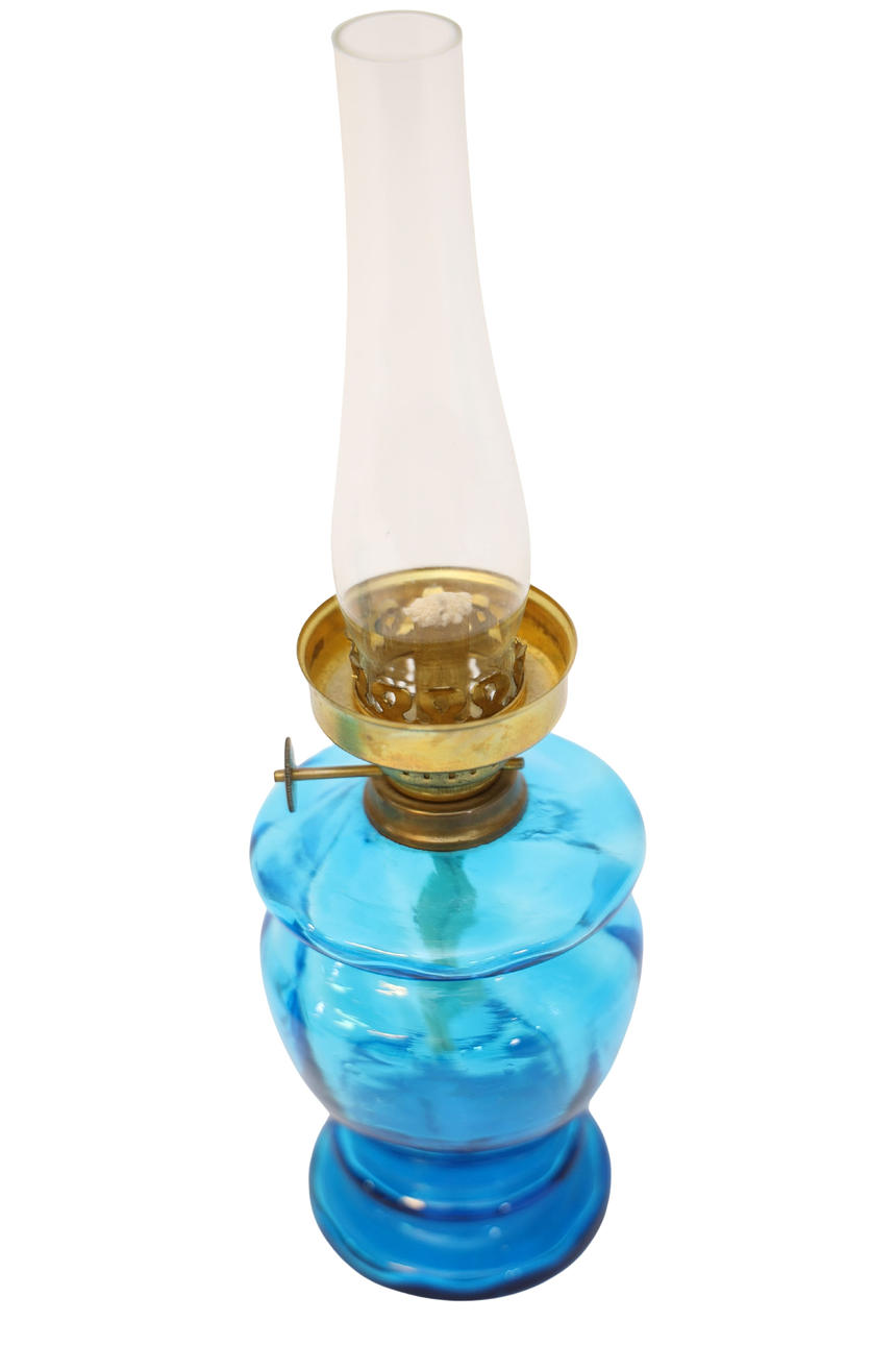 Blue-tinted glass and brass. Week hive. Height including pipe 26cm.