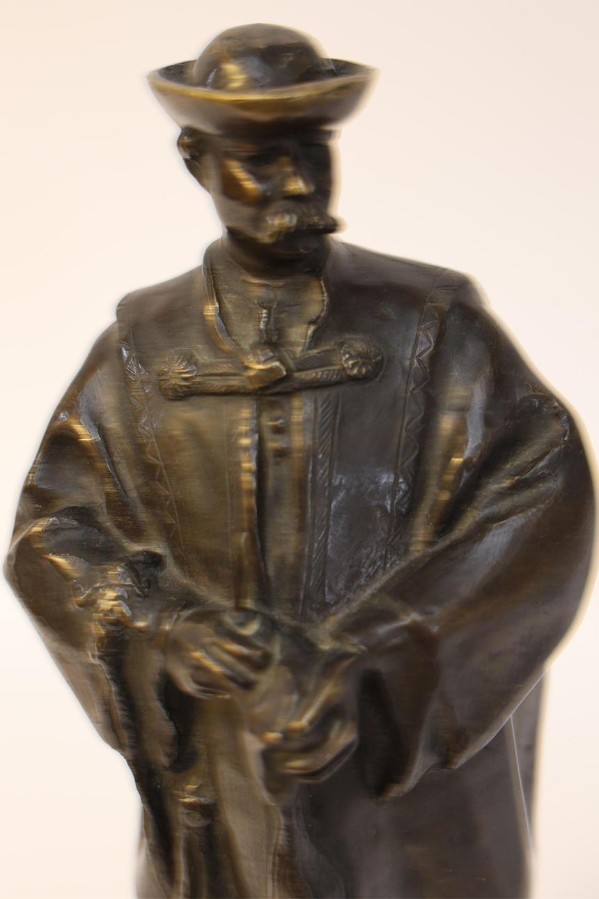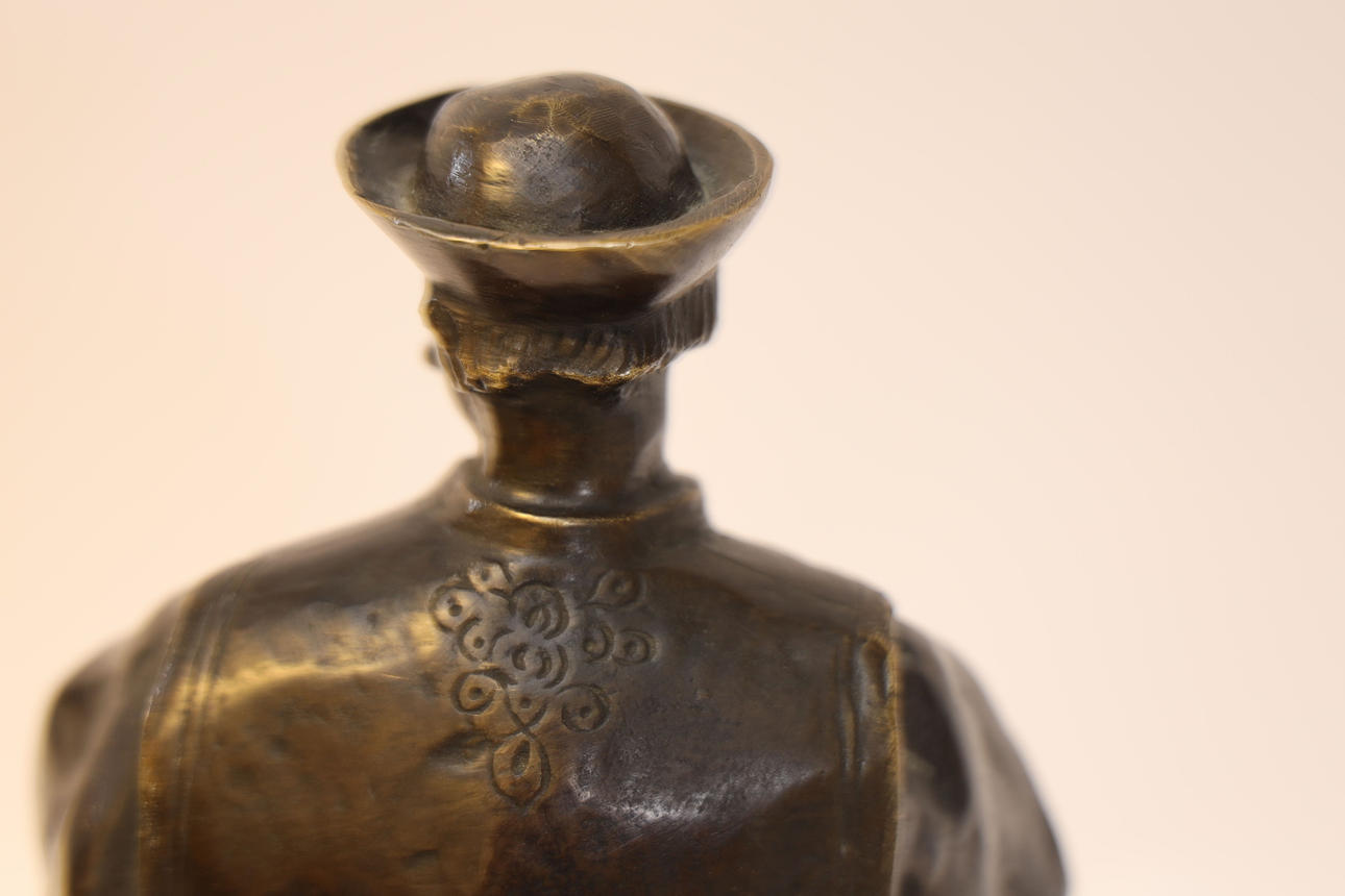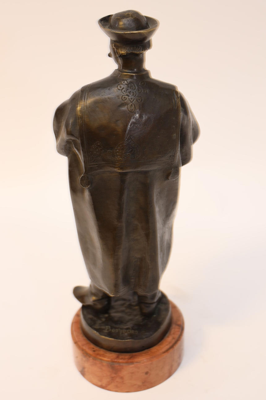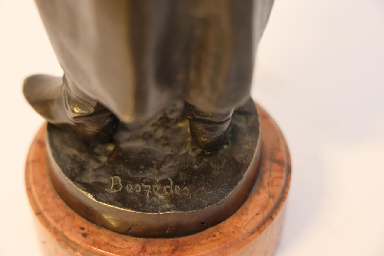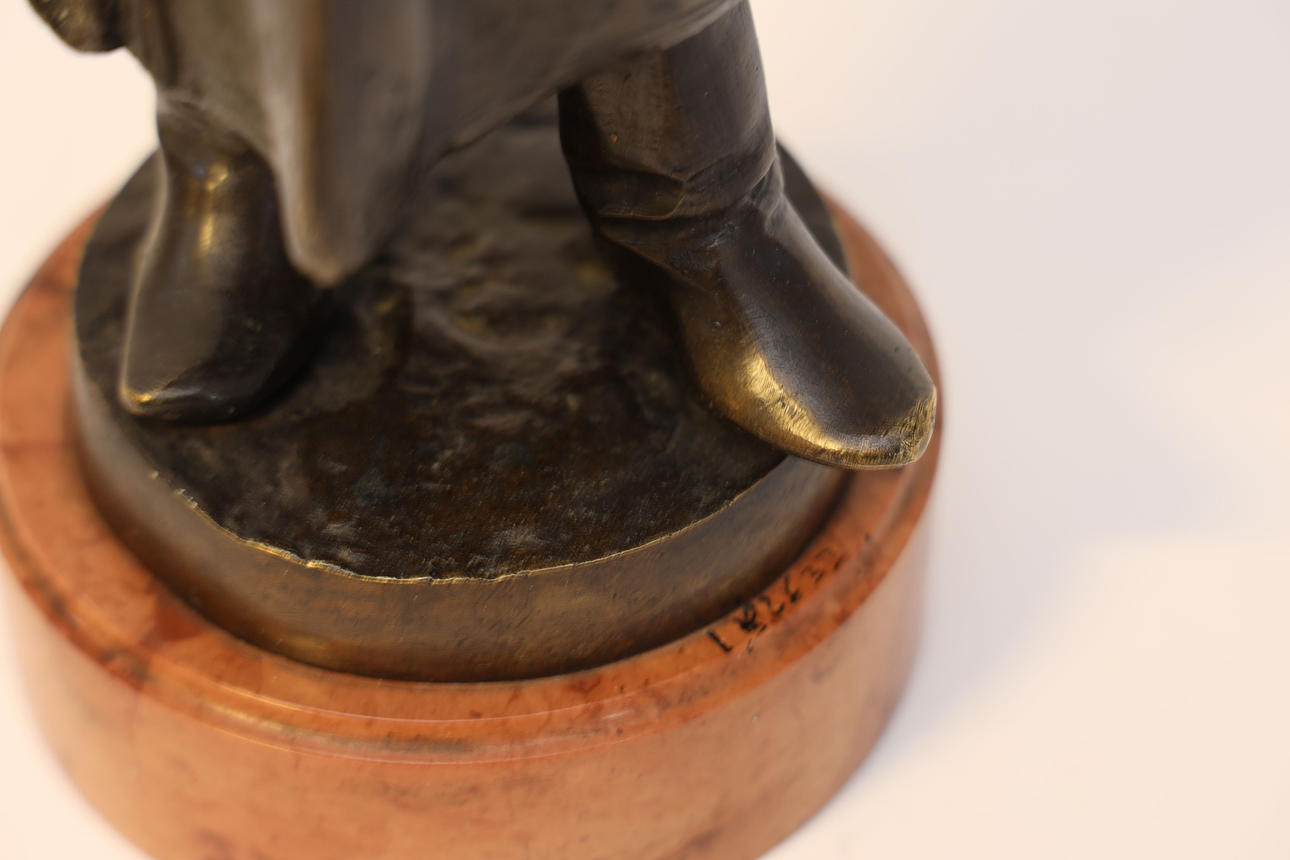 Bronze, mounted on pedestal of stone. Height including plinth 46cm.