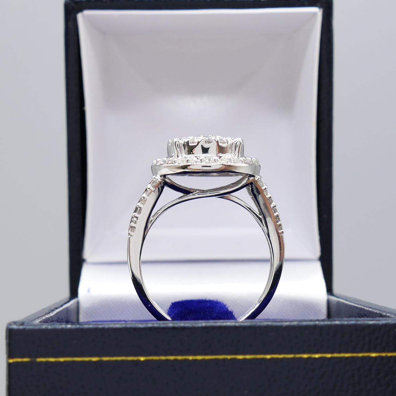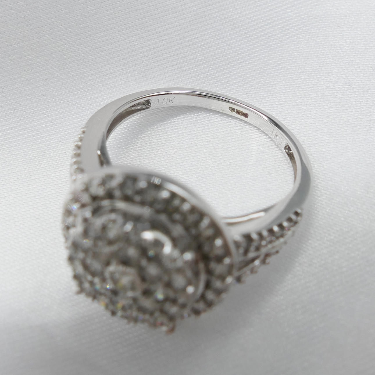 Ring: 9k white gold, as hallmarked; the ring head measures 14mm diameter; 4.4 grams