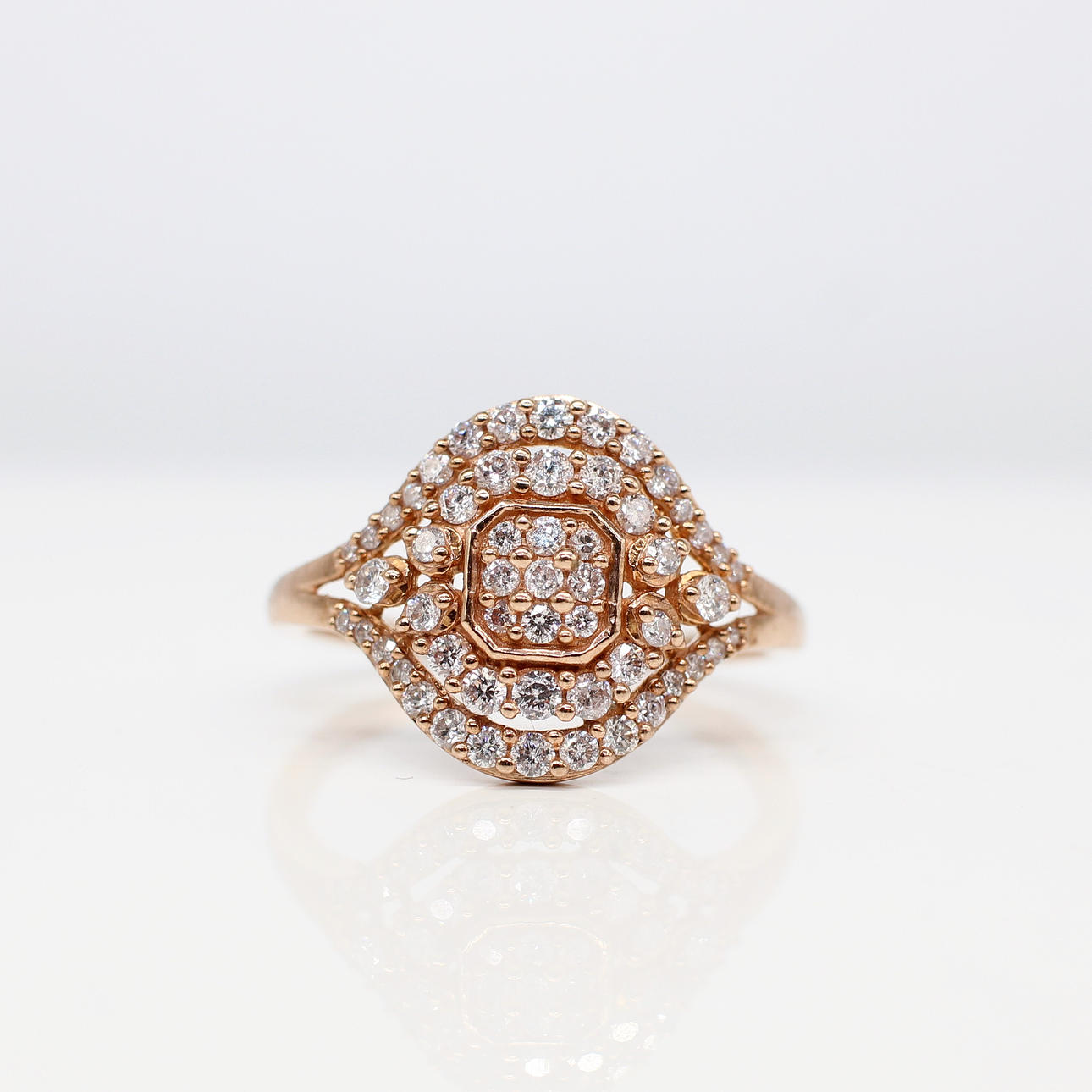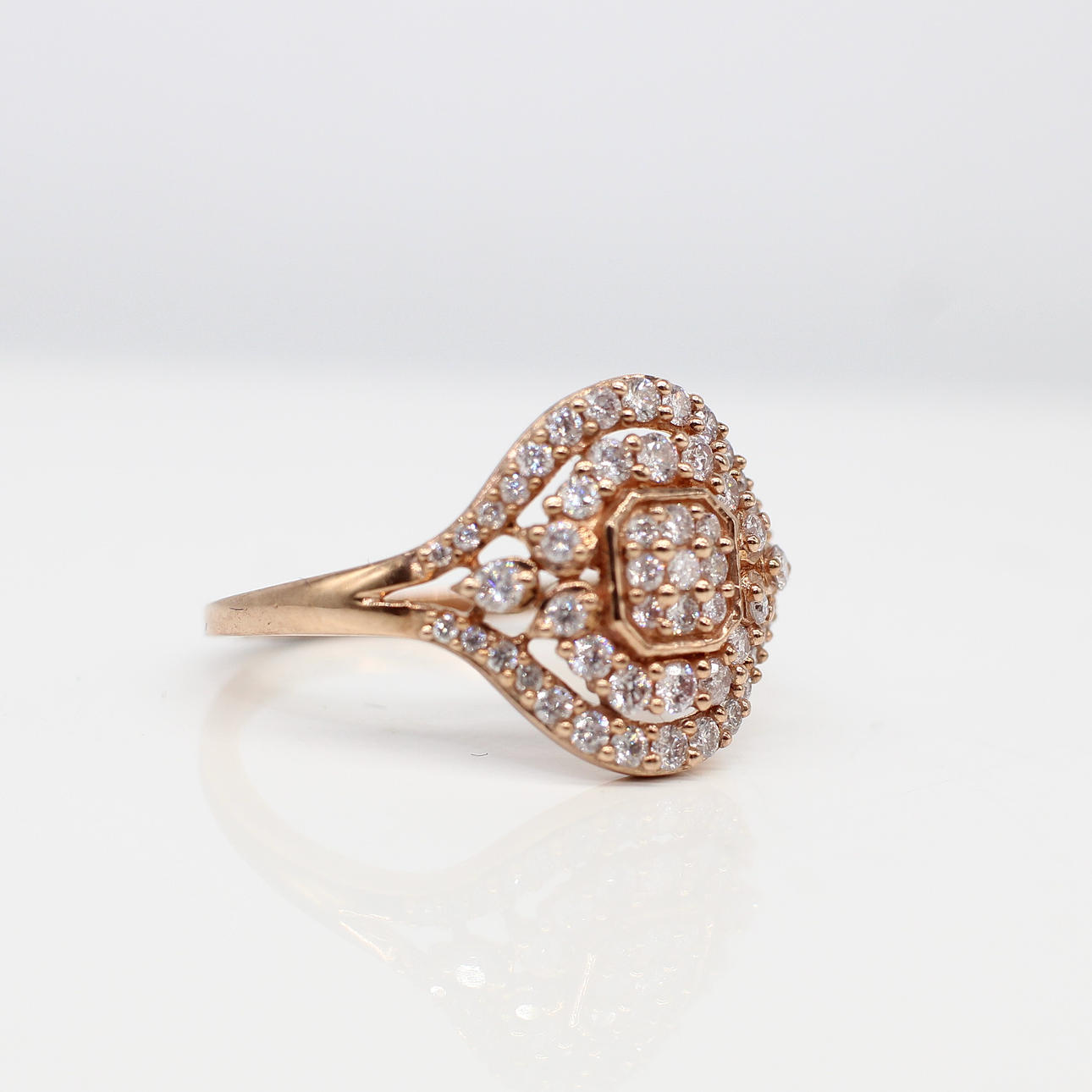 A 9ct Rose Gold (Hallmarked) Round Brilliant Cut Diamond Cluster Ring.