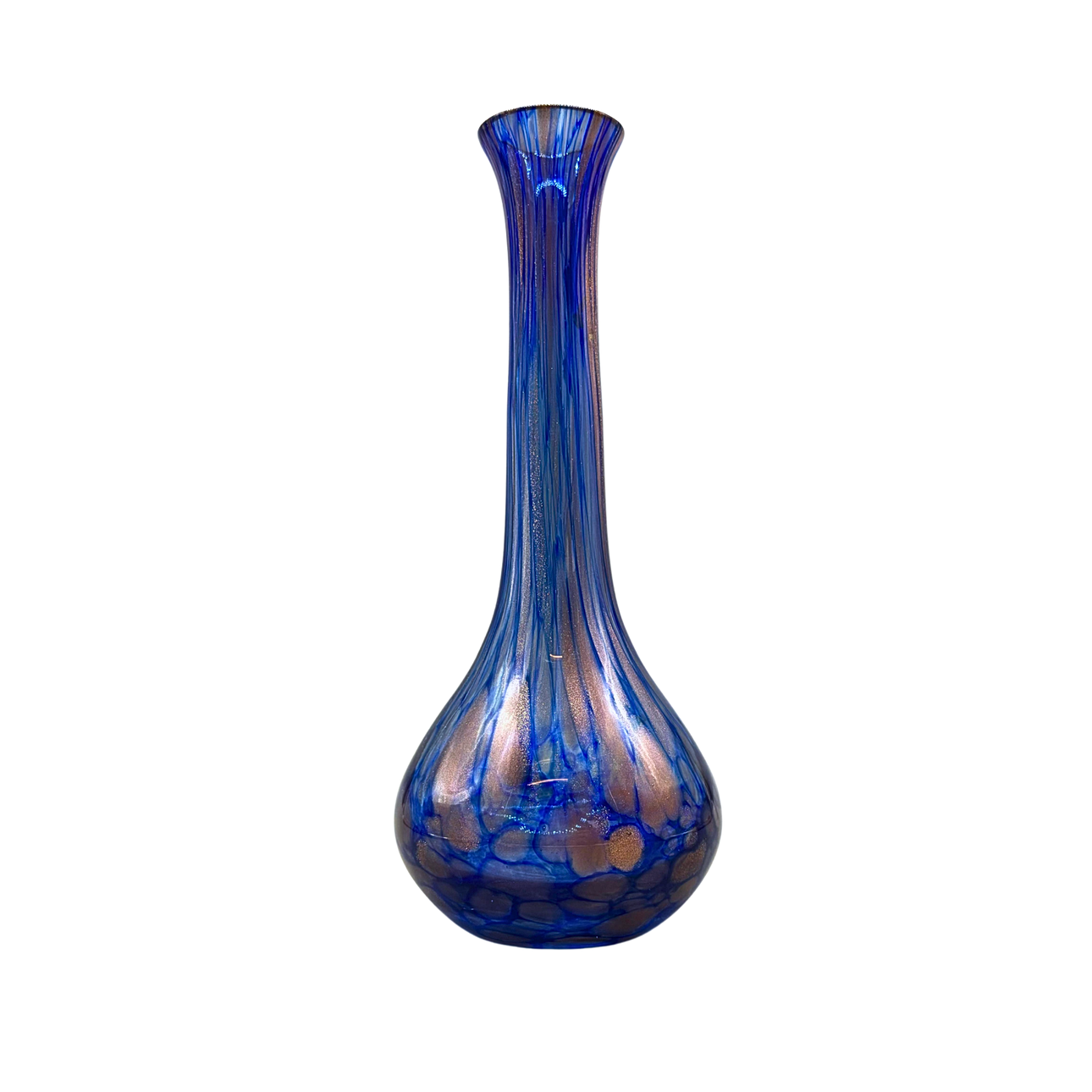 4833612. BLUE GLASS VASE WITH COPPER ACCENTS.