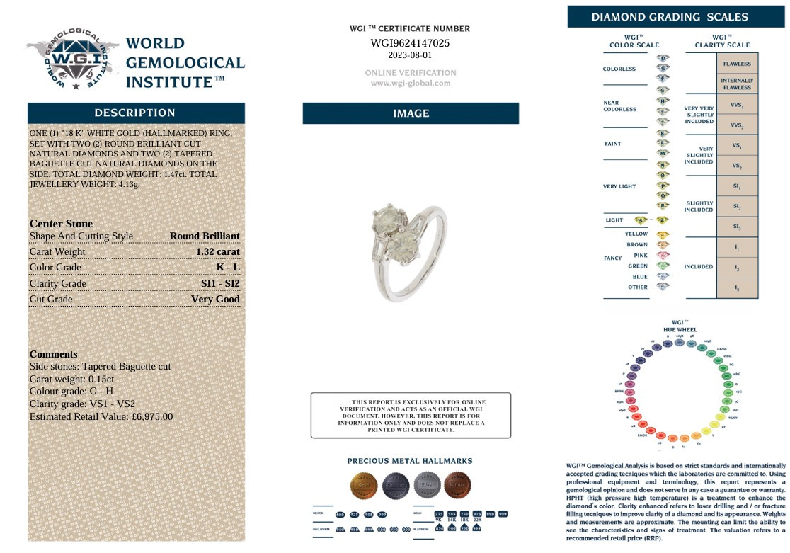 4833675. CERTIFIED 1.47CT DIAMOND RING 18K.