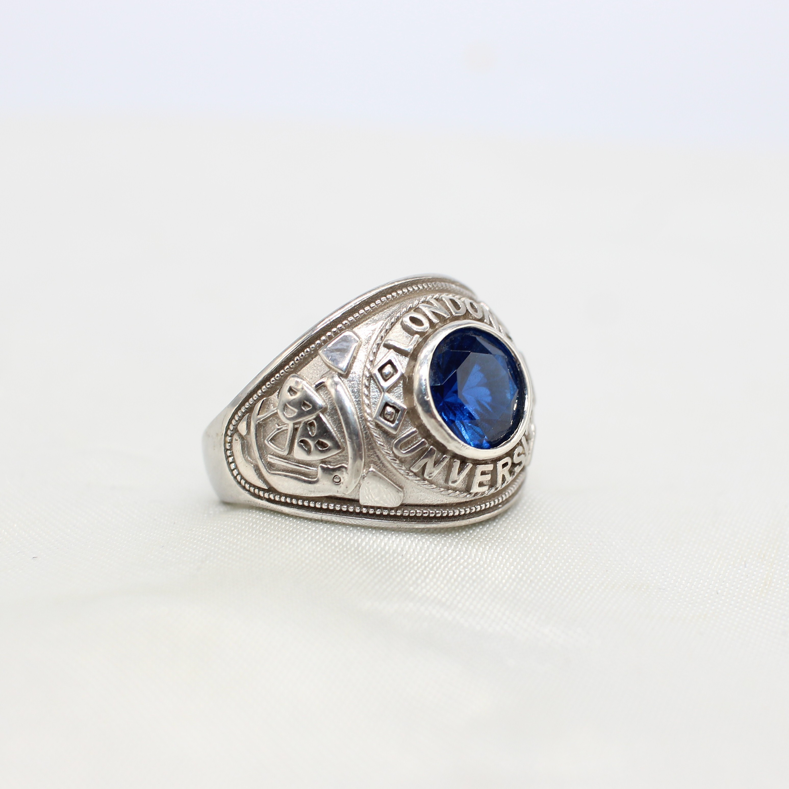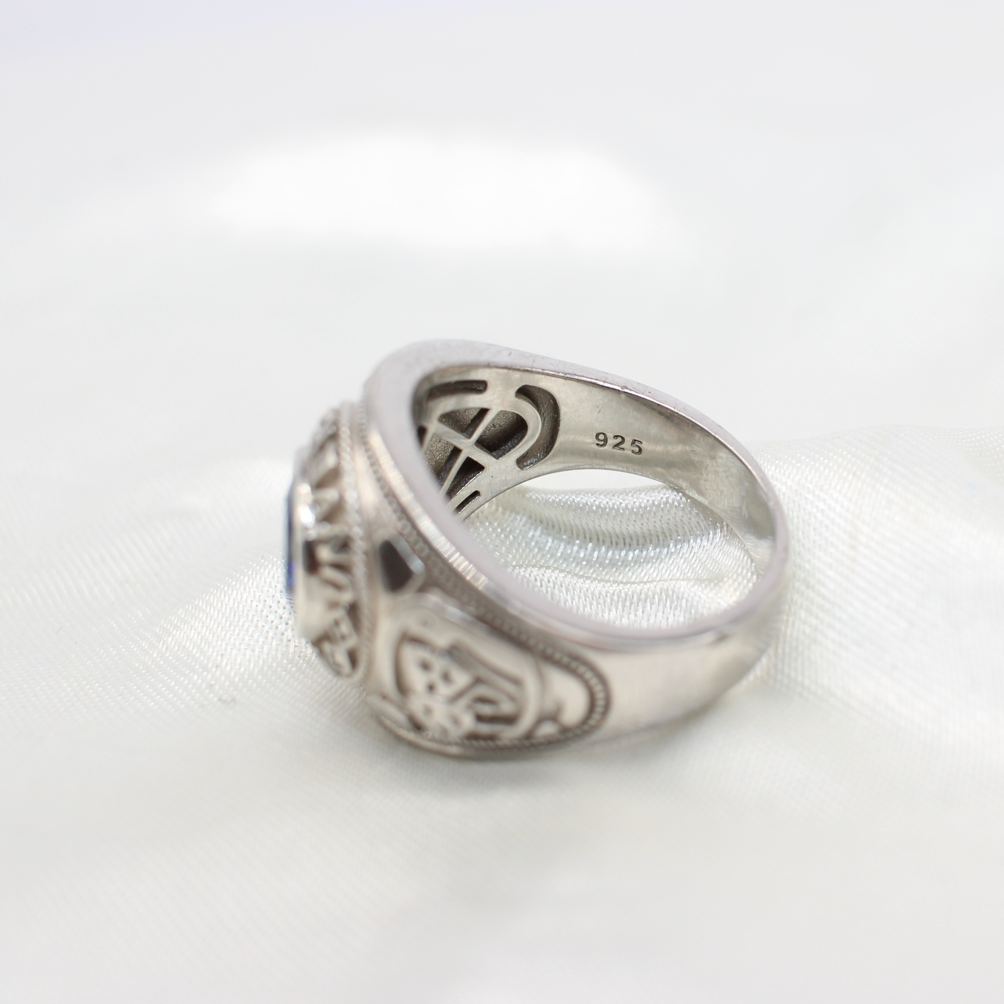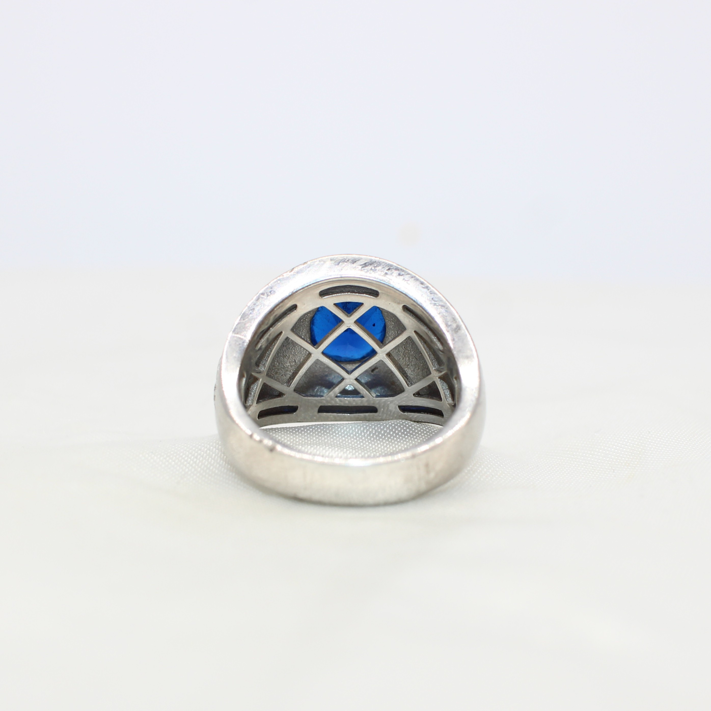 4833682. SILVER SIGNET RING WITH BLUE STONE.