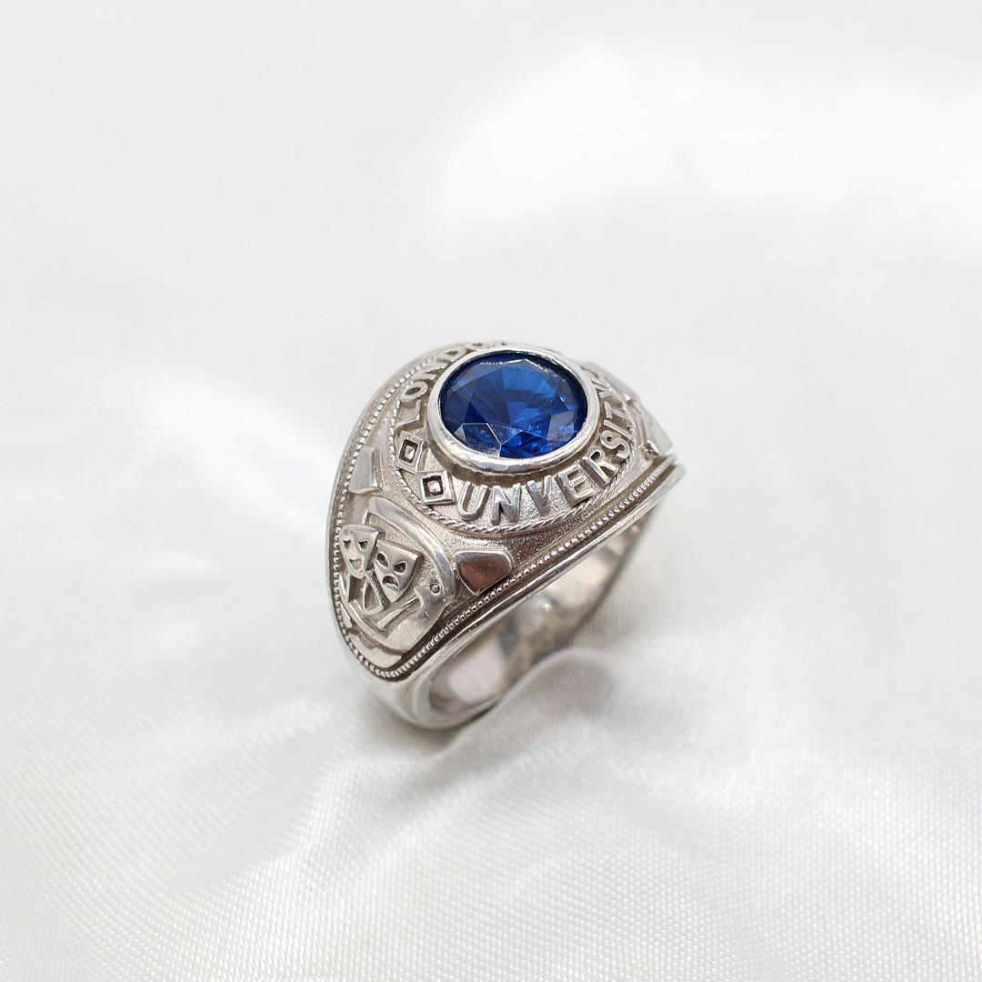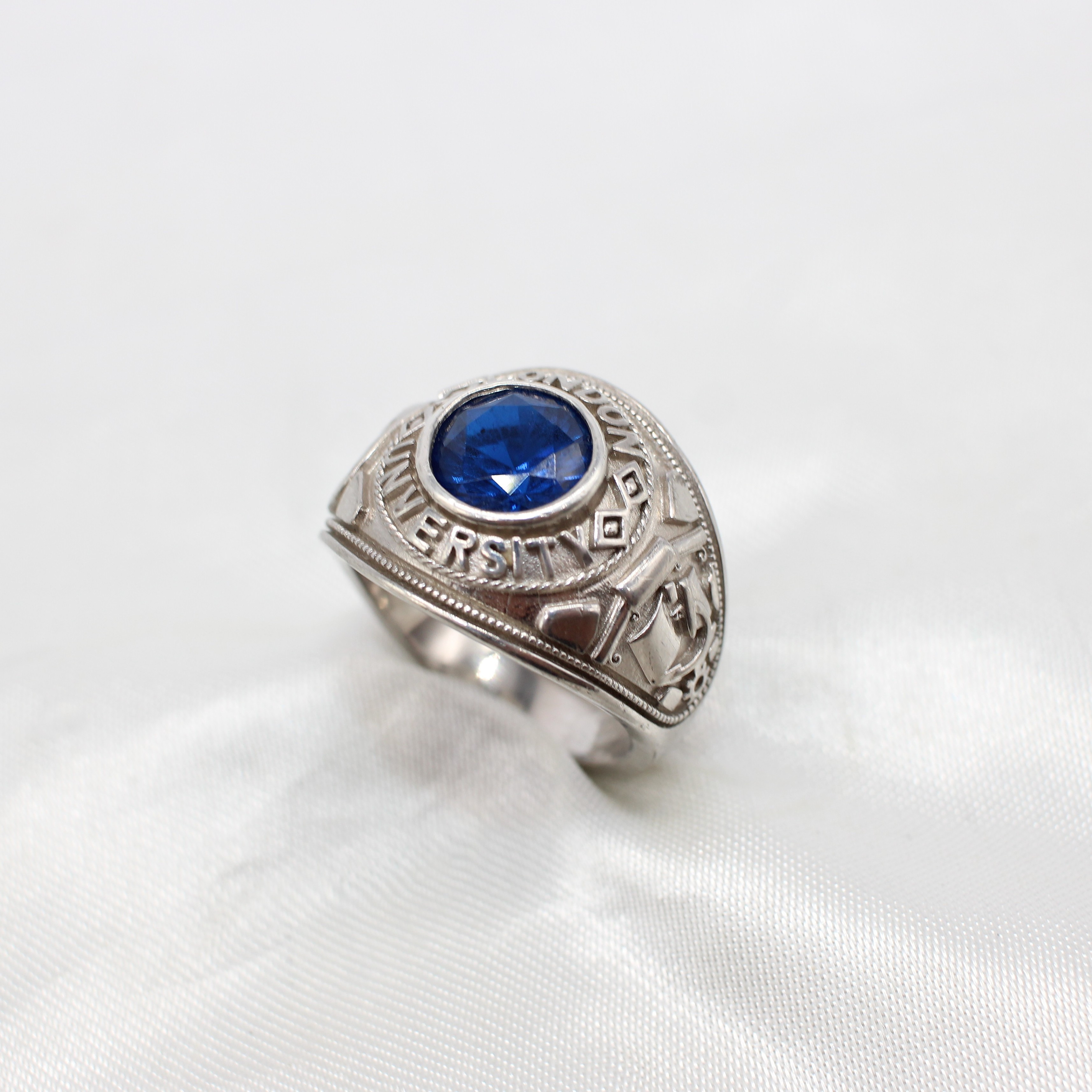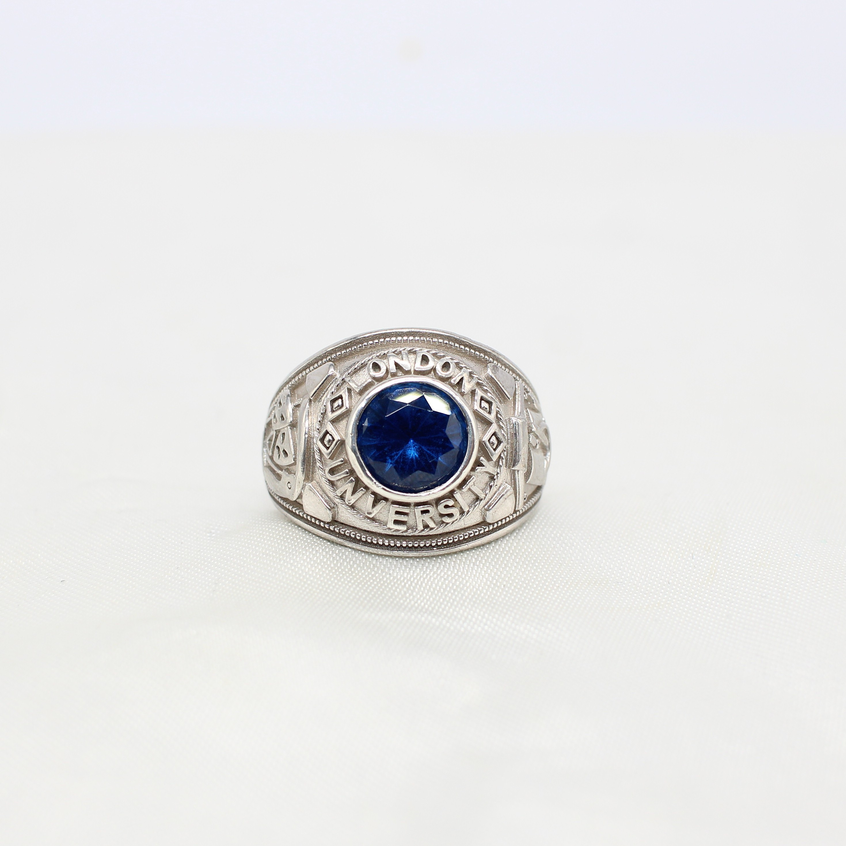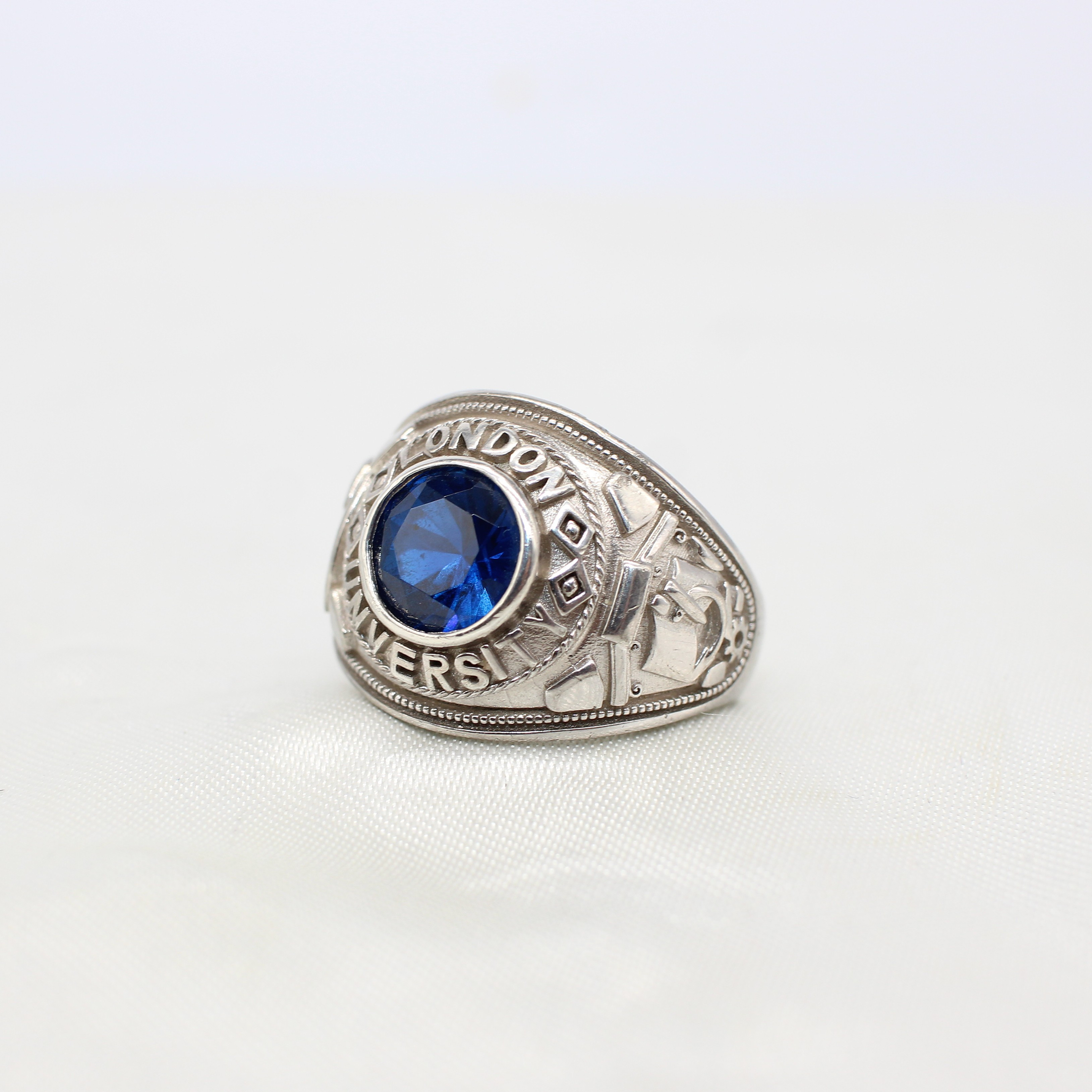 4833682. SILVER SIGNET RING WITH BLUE STONE.