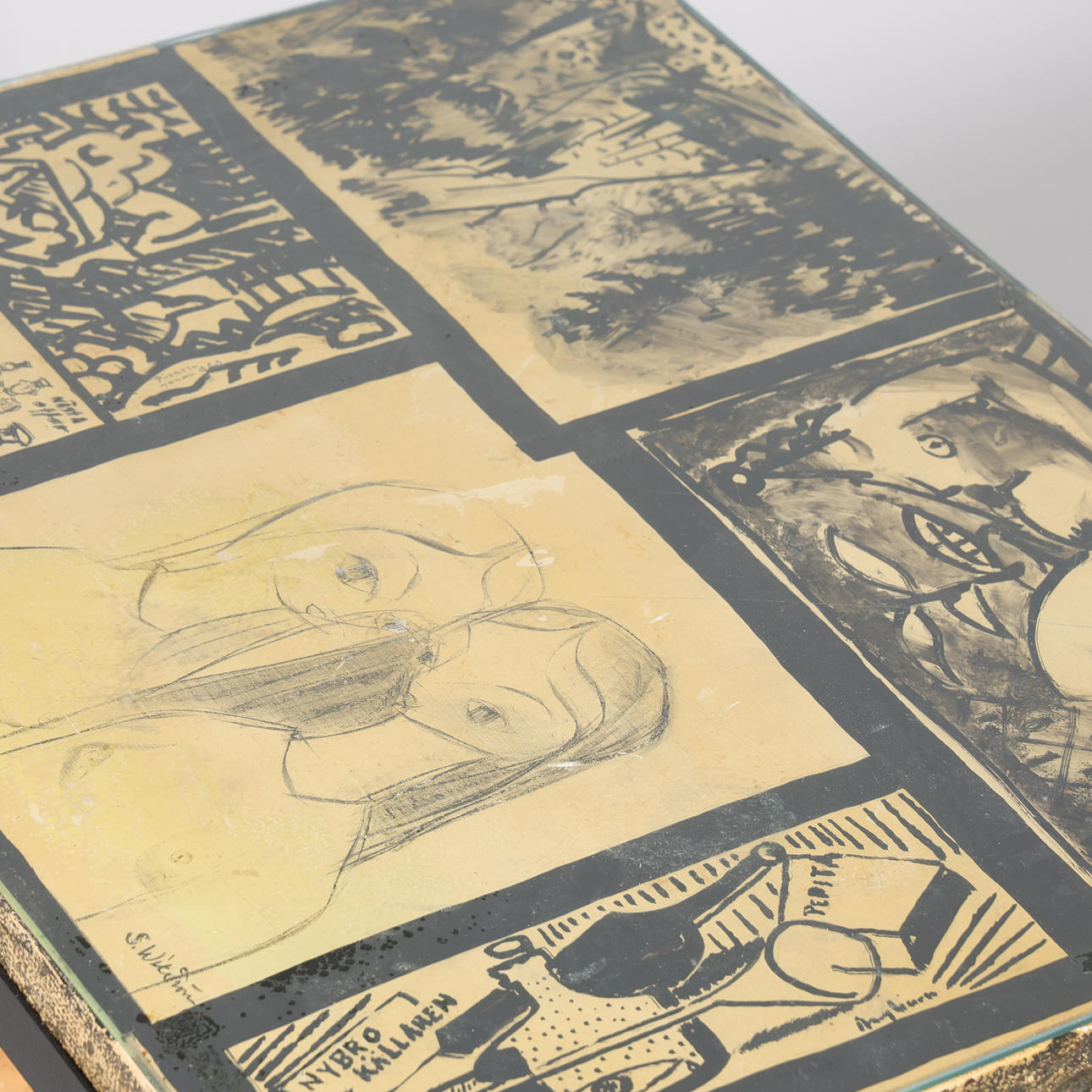7 paintings on the table top, signed by: