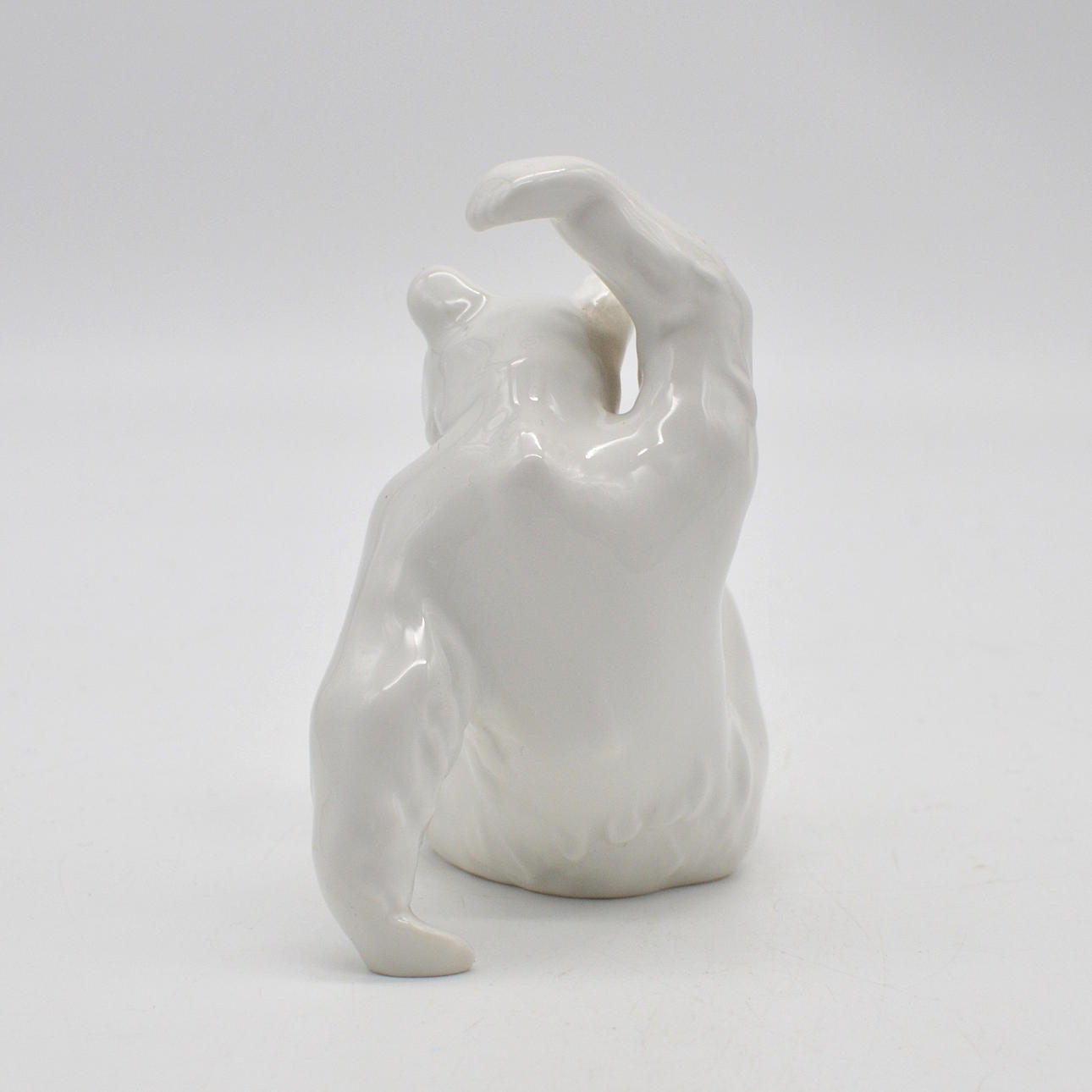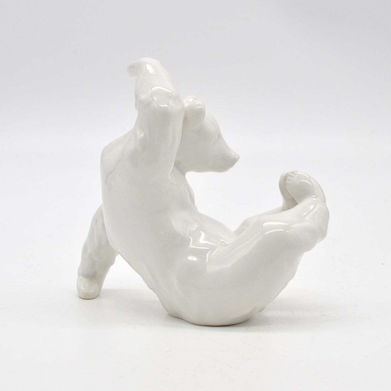KPM porcelain sculpture in white depicting a playing bear from around 2020.